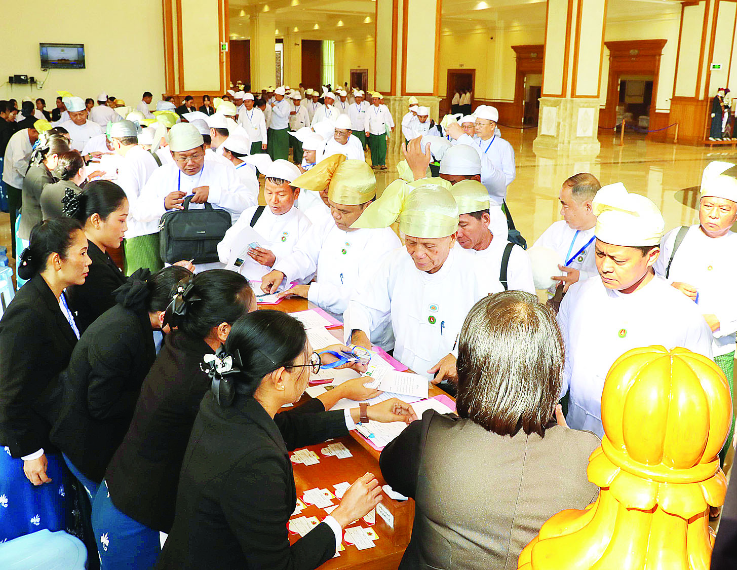 အစည်းအဝေးသို့ တိုင်းဒေသကြီးနှင့် ပြည်နယ်များမှ ရွေးကောက်ခံအမျိုးသားလွှတ်တော်ကိုယ်စားလှယ်များနှင့် တပ်မတော်သားအမျိုးသားလွှတ်တော်ကိုယ်စားလှယ်များ တက်ရောက်ကြသည်။