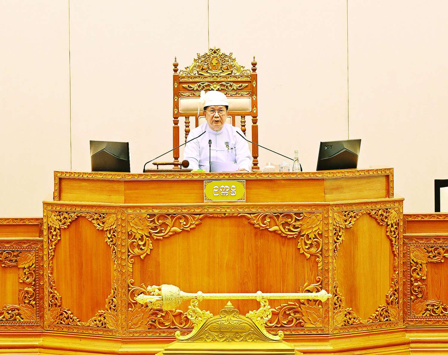 ဥပဒေပြုရေး လုပ်ငန်းတွေကို ဆောင်ရွက်တဲ့အခါမှာလည်း နိုင်ငံတော်ရဲ့ အမျိုးသားအကျိုးစီးပွား၊ နိုင်ငံတော်ရဲ့ နိုင်ငံရေးရည်မှန်းချက်၊ အမျိုးသားရေး ရည်မှန်းချက်၊ နိုင်ငံတော်နဲ့ နိုင်ငံသားများရဲ့ အကျိုးစီးပွားဖြစ်ထွန်းစေမှုတွေကို ဖော်ဆောင်ပေးမဲ့ ဥပဒေတွေ ပြဋ္ဌာန်းပေးတာ၊ ခေတ်စနစ်နဲ့ လျော်ညီအောင် ပြင်ဆင်ဖြည့်စွက်ပြဋ္ဌာန်းတာတွေ၊ ခေတ်စနစ်နဲ့လျော်ညီမှုမရှိတော့တဲ့ ဥပဒေတွေကို ရုပ်သိမ်းတာတွေဆောင်ရွက်ရာမှာ လွှတ်တော်ကိုယ်စားလှယ်အားလုံးက စည်းစည်းလုံးလုံး ညီညီညွတ်ညွတ်နဲ့ ဝိုင်းဝန်းကြိုးပမ်းဆောင်ရွက်သွားကြဖို့ တိုက်တွန်းလိုပါတယ်။