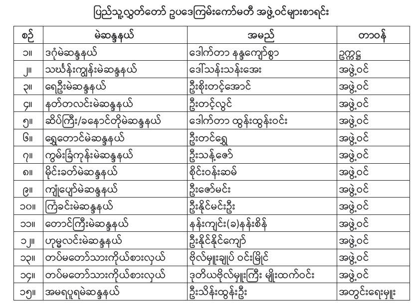 ဥပဒေကြမ်းကော်မတီနှင့် ပြည်သူ့ငွေစာရင်းကော်မတီနှစ်ရပ်ဖွဲ့စည်းမှု အတည်ပြုပြီး ကော်မတီနှစ်ရပ် ထပ်မံဖွဲ့စည်းရေး လွှတ်တော်သို့ တင်ပြ