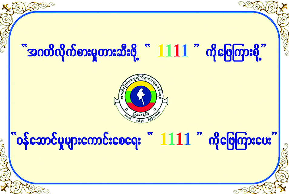 ၄။ သို့ဖြစ်ပါ၍ ပြည်သူလူထုအနေဖြင့် ကော်မရှင်နှင့် ပြည်ထောင်စုဝန်ကြီးဌာန/ အဖွဲ့အစည်းများရှိ အဂတိလိုက်စားမှုတားဆီးကာကွယ် ရေးအဖွဲ့များက Short Code “1111” ဖြင့် SMS ပေးပို့မေးမြန်းလိုက် သောမေးခွန်းများကို ပြန်လည်ဖြေကြားပေးခြင်းသည် အဂတိလိုက်စားမှု တားဆီးကာကွယ်ရေးလုပ်ငန်းများတွင် တစ်ဖက်တစ်လမ်းမှ ပါဝင်ဆောင်ရွက်ခြင်းဖြစ်သဖြင့် အများပြည်သူထံမှ တုံ့ပြန်မှုရယူခြင်းအစီအစဉ်ကို အတူတကွ ပူးပေါင်းပါဝင်ဆောင်ရွက်စေလိုပါကြောင်း အသိပေးနှိုးဆော်တင်ပြအပ်ပါသည်။