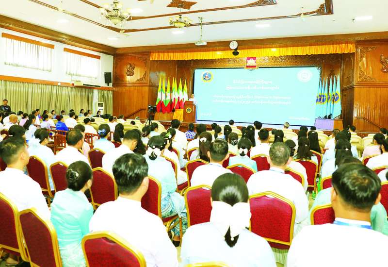 အခမ်းအနားတွင် ဒုတိယဝန်ကြီး ဒေါ်သန်းသန်းလင်းက သင်တန်းတွင် ဌာန၏လုပ်ငန်းတာဝန်များ၊ ဝန်ထမ်းများသိရှိလိုက်နာရမည့် နိုင်ငံ့ဝန်ထမ်းဥပဒေ/ နည်းဥပဒေများ၊ ဝန်ကြီးဌာနကထုတ်ပြန်ထားသည့် အသေးစားငွေရေးကြေးရေးလုပ်ငန်းဥပဒေ၊ လုပ်ထုံးလုပ်နည်းနှင့် ညွှန်ကြားချက်များ၊ အာမခံလုပ်ငန်းလုပ်ကိုင်ခွင့်ဥပဒေ၊ နည်းဥပဒေနှင့် လုပ်ထုံးလုပ်နည်းများနှင့် လုပ်ငန်းပိုင်းဆိုင်ရာဘာသာရပ်ဖြစ်သည့် ရုံးလုပ်ငန်းသဘောတရားနှင့် ပြီးပြည့်စုံသောရုံးလုပ်ငန်း၊ ငွေစာရင်းထိန်းသိမ်းရေးနည်းလမ်းများ၊ ပုံသေပိုင်ပစ္စည်းထိန်းသိမ်းစောင့်ရှောက်ခြင်းနှင့် ဆုံးရှုံးမှုများအားအရေးယူဆောင်ရွက်ခြင်းစသည့် စီမံခန့်ခွဲမှုဘာသာရပ်များ၊ အသေးစားငွေရေးကြေးရေးအဖွဲ့အစည်းများမှ လိုက်နာဆောင်ရွက်ရမည့် စံလုပ်ငန်းလမ်းညွှန်များ၊ အာမခံလုပ်ငန်းများအားကြီးကြပ်မှု၊ နိုင်ငံပိုင်ဘဏ်လုပ်ငန်းကြီးကြပ်ကွပ်ကဲခြင်းနှင့် အောင်ဘာလေထီလုပ်ငန်းများစစ်ဆေးခြင်း၊ MSME ကဏ္ဍဖွံ့ဖြိုးတိုးတက်ရေးဌာနမှ ဆောင်ရွက်နေမှုများ၊ AML/ CFT ဆိုင်ရာ အမျိုးသားအဆင့်မဟာဗျူဟာနှင့် ကြီးကြပ်ရေးအာဏာပိုင်၏ အခန်းကဏ္ဍများ၊ AML/ CFT ဆိုင်ရာ Off Site Supervision နှင့် On-Site Inspection စစ်ဆေးခြင်းစသည့် လုပ်ငန်းဘာသာရပ်များကို စာတွေ့ လက်တွေ့ပို့ချပေးခဲ့ကြောင်း၊ သင်တန်းသား သင်တန်းသူများအနေဖြင့် နိုင်ငံတကာနှင့် ရင်ပေါင်တန်းနိုင်ရေး နောင်တွင်လုပ်ငန်း ကျွမ်းကျင်မှုသင်တန်းများကို စဉ်ဆက်မပြတ်ဖွင့်လှစ်နိုင်ရေးဆောင်ရွက်ကြရန်နှင့် အရာထမ်း၊ အမှုထမ်းများအနေဖြင့် နိုင်ငံ့ဝန်ထမ်းပီသစွာ နိုင်ငံတော်အပေါ်သစ္စာရှိရှိဖြင့် ဌာနတာဝန်များကိုကျေပွန်စွာဆောင်ရွက်ကြရန် ပြောကြားသည်။