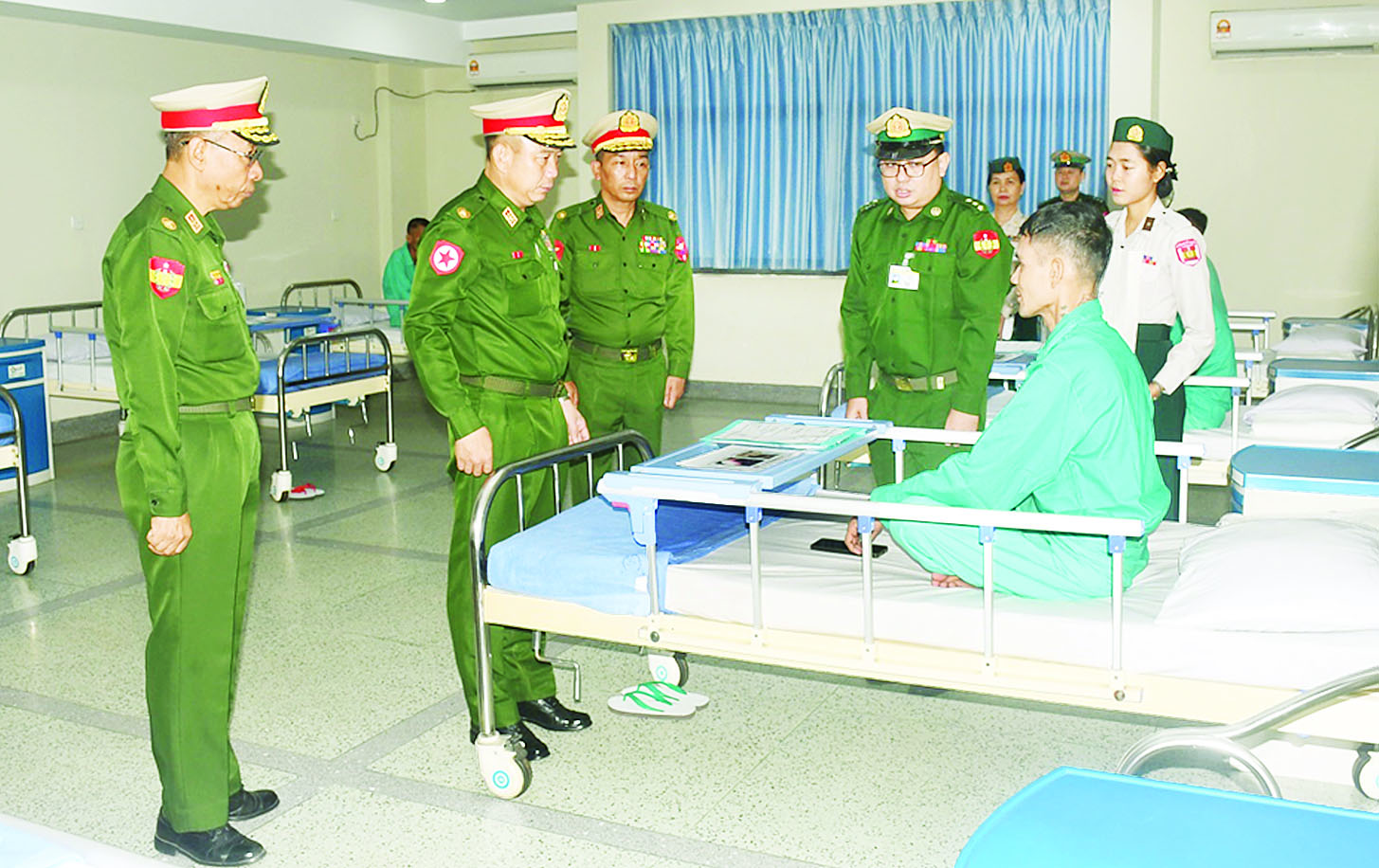 ထိုသို့ ဆောင်ရွက်ပေးလျက်ရှိရာ ယနေ့တွင် ကချင်ပြည်နယ် မြစ်ကြီးနားမြို့ရှိ တပ်မတော်ဆေးရုံ၊ ရှမ်းပြည်နယ် (မြောက်ပိုင်း) လားရှိုးမြို့ရှိ တပ်မတော်ဆေးရုံ၊ ရှမ်းပြည်နယ် (တောင်ပိုင်း) တောင်ကြီးမြို့ရှိ တပ်မတော်ဆေးရုံ၊ မွန်ပြည်နယ် မော်လမြိုင်မြို့ရှိ တပ်မတော်ဆေးရုံ၊ ရန်ကုန် တိုင်းဒေသကြီး မင်္ဂလာဒုံမြို့နယ်ရှိ တပ်မတော်အရိုးရောဂါအထူးကု ဆေးရုံကြီး (ခုတင်-၅၀၀) နှင့် တပ်မတော်ဆေးရုံကြီး (ခုတင်− ၁၀၀၀)၊ ရခိုင်ပြည်နယ် စစ်တွေမြို့ရှိ တပ်မတော်ဆေးရုံ၊ စစ်ကိုင်း တိုင်းဒေသကြီး မုံရွာမြို့ရှိ တပ်မတော်ဆေးရုံနှင့် ပဲခူးတိုင်းဒေသကြီး တောင်ငူမြို့ရှိ တပ်မတော် ဆေးရုံတို့၌ တက်ရောက်ဆေးကုသမှု ခံယူလျက်ရှိသော အရာရှိ၊ စစ်သည်၊ မိသားစုဝင်များ၊ မြန်မာနိုင်ငံရဲတပ်ဖွဲ့ဝင်များ၊ စစ်မှုထမ်းဟောင်းအဖွဲ့ဝင်များ၊ ပြည်သူ့စစ် (ဌာနေ) တပ်ဖွဲ့ဝင်များနှင့် ဒေသခံတိုင်းရင်းသားပြည်သူများအား တိုင်းစစ်ဌာနချုပ်များမှ တိုင်းမှူးများနှင့် တာဝန်ရှိသူများက သွားရောက်ကြည့်ရှု၍ လူနာတစ်ဦးချင်း၏ ရောဂါဖြစ်ပွားမှု၊ ဆေးဝါးကုသပေးထားမှုနှင့် ကျန်းမာရေးတိုးတက်ကောင်းမွန်မှု အခြေအနေများကို ရင်းရင်းနှီးနှီး မေးမြန်းအားပေး စကားပြောကြားကာ အာဟာရဖြည့် စားသောက်ဖွယ်ရာများနှင့် ချီးမြှင့်ငွေများ ပေးအပ်သည်။