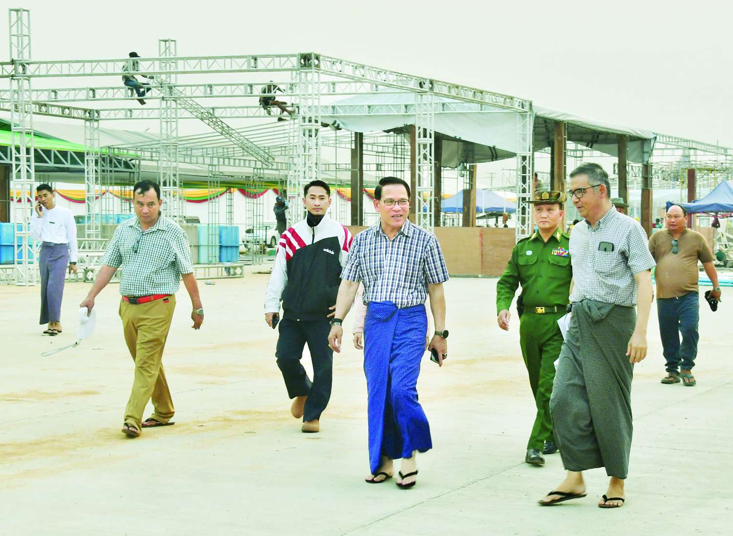 ပြည်သူ့လွှတ်တော် ဒုတိယဥက္ကဋ္ဌနှင့်အဖွဲ့သည် နေပြည်တော်ရင်ပြင်၌ လမ်းလျှောက်သင်္ကြန် မုခ်ဦးတည်ဆောက်နေမှု၊ ဖွင့်ပွဲအခမ်းအနားကျင်းပနိုင်ရေး စီမံဆောင်ရွက်နေမှု၊ ဖွင့်ပွဲအခမ်းအနားတွင် ယိမ်းအဖွဲ့များ သီဆိုကပြဖျော်ဖြေတင်ဆက်နိုင်ရေး ဆောင်ရွက်ထားရှိမှု၊ မြန်မာ့ရိုးရာသနပ်ခါးနှင့် လက်ဖက်ပွဲတော်မဏ္ဍပ်နှင့် ထမနဲမဏ္ဍပ် တည်ဆောက်နေမှု၊ ဝန်ကြီးဌာနများအလိုက် မဟာသင်္ကြန်မဏ္ဍပ်များ တည်ဆောက်နေမှု၊ စတုဒိသာကျွေးမွေးနိုင်ရန် ပြင်ဆင်ဆောင်ရွက်နေမှု၊ လမ်းလျှောက်သင်္ကြန်ကျင်းပမည့် ဧရိယာအတွင်း မီးဘေးအန္တရာယ်မဖြစ်ပေါ်စေရေးနှင့် ရေပြတ်တောက်မှုမရှိစေရေးစီမံဆောင်ရွက်နေမှု၊ လမ်းလျှောက်သင်္ကြန်လာ ရောက်လည်ပတ်ကြသည့် ပြည်သူများအား ကျန်းမာရေးစောင့်ရှောက်မှုပေးနိုင်ရေး စီမံဆောင်ရွက်မှုတို့ကို ကြည့်ရှုစစ်ဆေးပြီး ကော်မတီအသီးသီးအနေဖြင့် မိမိတို့ ဆောင်ရွက်ရမည့် လုပ်ငန်းများအလိုက် အချိန်မီပြီးစီးစေရေးပူးပေါင်းဆောင်ရွက်သွားကြရန် မှာကြားသည်။ နေပြည်တော်ရင်ပြင်၌ ကျင်းပမည့် လမ်းလျှောက်သင်္ကြန်တွင် ပြည်တွင်းမှ နိုင်ငံကျော်အနုပညာရှင်များဖြစ်သည့် အကယ်ဒမီများရှင် ရန်အောင်၊ ထပ်ဆင့်အကယ်ဒမီရဲအောင်၊ အကယ်ဒမီနေအောင်၊ အကယ်ဒမီများရှင် စိုးမြတ်သူဇာနှင့် စည်သူလွင်၊ ဖိုးကာ၊ ဖြိုးကြီး၊ ဂျီလတ်၊ နောနော်၊ ဝေလ၊ လွှမ်းပိုင်၊ ရွှေထူး၊ G Fatt ၊ ဝန၊ ဇွဲထက်၊ Project K အဖွဲ့၊ မေခလာ၊ ကော်နီ၊ ထွန်းအိန္ဒြာဗိုလ်၊ ချောစုခင်၊ ဆုန် သင်းပါရ်၊ နန်းစုရတီစိုး၊ ရတနာ မိုင်၊ Bobby Soxer ၊ ယွန်းမြတ် သူ၊ အယွန်းတို့က Mercury IX Music Band ၊ New Paper Music Band တို့နှင့် တွဲဖက်၍ ပြည်သူအကြိုက် တေးသီချင်းများဖြင့် ရက်အလိုက် ပါဝင်သီဆိုဖျော်ဖြေ သွားကြမည်ဖြစ်ပြီး လာရောက် လည်ပတ်ကြမည့် ပြည်သူများအား ရွှေသံလွင်မိသားစုက စတုဒိသာ အကျွေးအမွေးများဖြင့်လည်း ဧည့်ခံသွားမည်ဖြစ်ကြောင်း သိရသည်။
