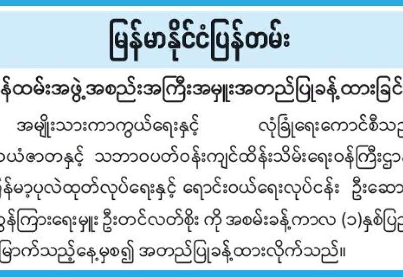 ရန်ကုန်မြို့နှင့် မန္တလေးမြို့အတွက် ရည်ညွှန်းလက်ကားဈေးနှုန်းများနှင့် ပြည်ထောင်စုနယ်မြေ နေပြည်တော်၊ တိုင်းဒေသကြီး/ပြည်နယ် မြို့တော်များအတွက် ရည်ညွှန်းလက်လီဈေးနှုန်းများ