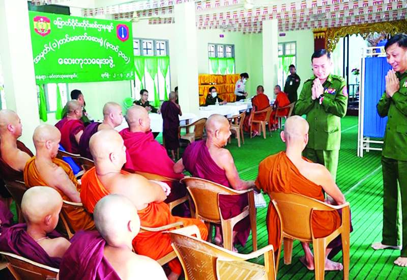 တပ်မတော်အနေဖြင့် ပြည်သူလူထု၏ ကျန်းမာရေးကဏ္ဍ တိုးတက်မြင့်မားစေရန်အတွက် ကျန်းမာရေးစောင့်ရှောက်မှုလုပ်ငန်းများတွင် တစ်ဖက်တစ်လမ်းမှ ကူညီစောင့်ရှောက်ပေးမှုများ ဆောင်ရွက်ပေးလျက်ရှိရာ ယနေ့နံနက်ပိုင်းတွင် မြောက်ပိုင်းတိုင်းစစ်ဌာနချုပ် နယ်လှည့်ဆေးကုသရေးအဖွဲ့က ကချင်ပြည်နယ် မြစ်ကြီးနားမြို့ပေါ်ရှိ သံဃာတော်များအား မင်္ဂလာသုခကျောင်းတိုက်၌ အခြေပြု၍ ကျန်းမာရေးစောင့်ရှောက်မှုလုပ်ငန်းများ ဆောင်ရွက်ပေးသည်။