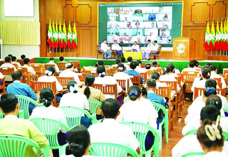 အပူဒဏ်အန္တရာယ်နှင့်ပတ်သက်သော ကျန်းမာရေးပြဿနာများ ကာကွယ်ကုသရေးညှိနှိုင်းအစည်းအဝေးကို ယနေ့မွန်းလွဲပိုင်းတွင် Semi Virtual စနစ်ဖြင့်ကျင်းပရာ ကျန်းမာရေးဝန်ကြီးဌာန ဒုတိယဝန်ကြီး ဒေါက်တာအေးထွန်း၊ မကွေးတိုင်းဒေသကြီး၊ ပဲခူးတိုင်းဒေသကြီး၊ မန္တလေးတိုင်းဒေသကြီး၊ ရန်ကုန်တိုင်းဒေသကြီးနှင့် နေပြည်တော်တို့မှ ပြည်သူ့ကျန်းမာရေးနှင့် ကုသရေးဦးစီးဌာနမှူးများ၊ ပြည်သူ့ကျန်းမာရေးဦးစီးဌာနနှင့် ကုသရေးဦးစီးဌာနများမှ တာဝန်ရှိသူများနှင့် ဗဟိုအဆင့်ဆေးရုံကြီးများမှ ဆေးရုံအုပ်ကြီးများ တက်ရောက်ကြသည်။