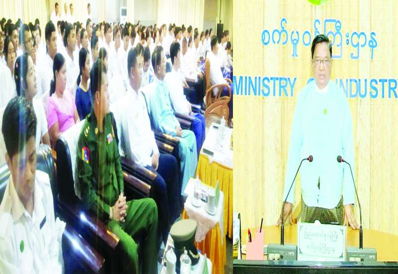 စက်မှုဝန်ကြီးဌာန ပြည်ထောင်စုဝန်ကြီး ဒေါက်တာချာလီသန်းသည် ယနေ့နံနက်ပိုင်းတွင် မကွေးတိုင်းဒေသကြီး မကွေးမြို့ရှိ အမှတ်(၅)စက်မှု သင်တန်းကျောင်း(မကွေး)၌ ကျင်းပသည့် စက်မှုကျွမ်းကျင်(၁)နှစ်သင်တန်း အမှတ်စဉ်(၁၃) သင်တန်းဆင်းပွဲကို စက်မှုဝန်ကြီးဌာန ရုံးအမှတ်(၃၀) အစည်း အဝေးခန်းမမှ Virtual စနစ်ဖြင့် တက်ရောက်ပြီး စက်မှုဝန်ကြီးဌာန စက်မှုပူးပေါင်းဆောင်ရွက်ရေးဦးစီးဌာန ညွှန်ကြားရေးမှူးချုပ်၊ တိုင်းဒေသကြီး/ခရိုင်အဆင့် ဌာနဆိုင်ရာတာဝန်ရှိသူများ၊ ကျောင်းအုပ်ကြီးနှင့် နည်းပြဆရာ ဆရာမများ၊ သင်တန်းသား သင်တန်းသူများနှင့် မိဘများ၊ ဖိတ်ကြားထားသည့် ဧည့်သည်တော်များနှင့် တာဝန်ရှိသူများတက်ရောက်ကြသည်။