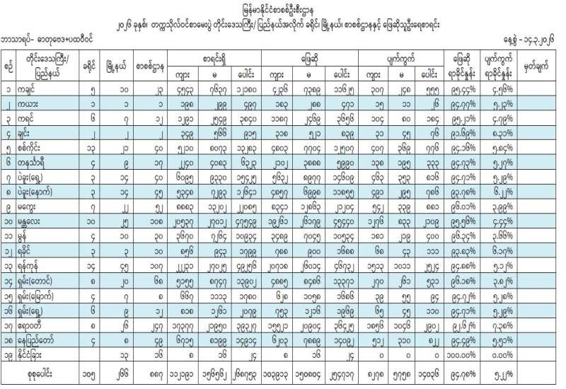 ၂၀၂၆ ခုနှစ် တက္ကသိုလ်ဝင်စာမေးပွဲနှင့် ၂၀၂၆ ခုနှစ် စက်မှု၊ စိုက်ပျိုး၊ မွေးမြူရေးတက္ကသိုလ်ဝင်စာမေးပွဲများကို ယနေ့နံနက်ပိုင်းတွင် နိုင်ငံခြားစာစစ်ဌာနအပါဝင် တစ်နိုင်ငံလုံးအတိုင်းအတာဖြင့် ဆက်လက်ကျင်းပသည်။