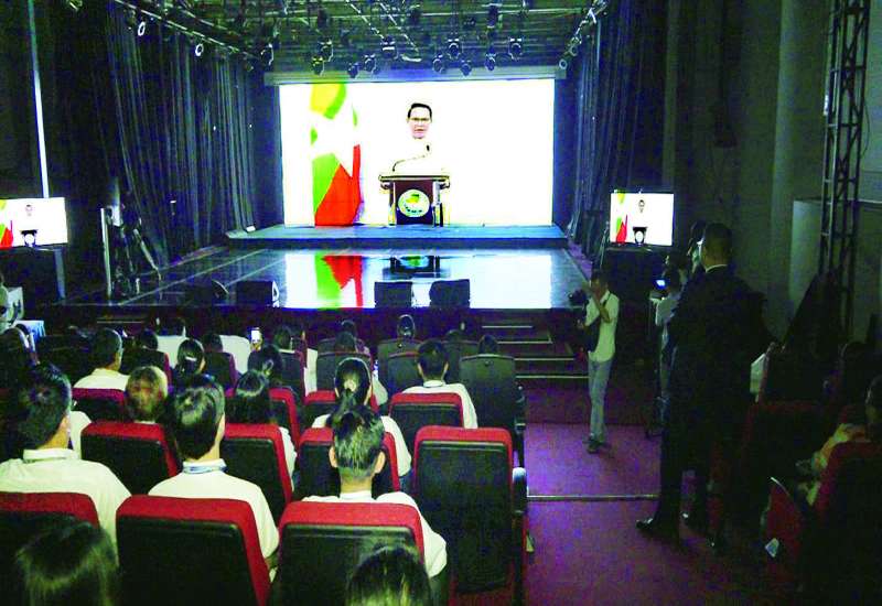 “မြန်မာ့မျက်နှာစာသစ်ဖိုရမ်” (ယုံကြည်မှု၊ တည်ငြိမ်အေးချမ်းမှုနှင့် ဖွံ့ဖြိုးတိုးတက်မှု) “Forum on The Dawn of A New State”(Trust, Stability & Development) ပထမနေ့ကို ယနေ့တွင် နေပြည်တော်ရှိ မြန်မာအပြည်ပြည်ဆိုင်ရာကွန်ဗင်းရှင်းဗဟိုဌာန (၁) (MICC I) ၌ ကျင်းပသည်။