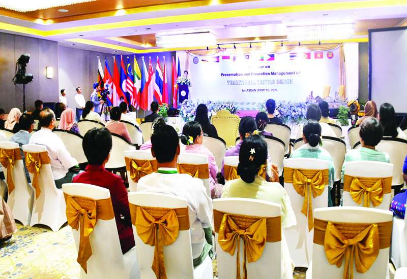 အာဆီယံနိုင်ငံများဆိုင်ရာ ရိုးရာအထည်ဒီဇိုင်းများထိန်းသိမ်းရေးနှင့် မြှင့်တင်ရေးစီမံခန့်ခွဲမှုဆွေးနွေးပွဲကို ယနေ့နံနက်ပိုင်းတွင် ရန်ကုန်တိုင်းဒေသကြီး ကမာရွတ်မြို့နယ် ပြည်လမ်းမပေါ်ရှိ Novotel Yangon Max Hotel ၌ ကျင်းပသည်။