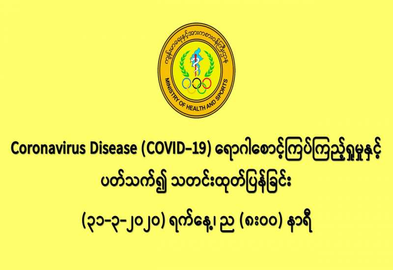 ကျန်းမာရေးနှင့် အားကစားဝန်ကြီးဌာနသည် ကမ္ဘာ့နိုင်ငံများတွင် ကူးစက်ပျံ့နှံ့လျက်ရှိသည့် COVID-19 လတ်တလောအသက်ရှူလမ်းကြောင်းဆိုင်ရာ ရောဂါဖြစ်ပွားမှုဖြစ်စဉ်နှင့် ပတ်သက်၍ ရောဂါစောင့်ကြပ်ကြည့်ရှုခြင်း လုပ်ငန်းများအား အပြည်ပြည်ဆိုင်ရာ ဝင်ပေါက်၊ ထွက်ပေါက်ဂိတ် များတွင်လည်းကောင်း၊ ဆေးရုံအခြေပြုအဖြစ်လည်းကောင်း၊ ပြည်သူလူထု အခြေပြု စောင့်ကြပ်ကြည့်ရှုခြင်း လုပ်ငန်းများဖြင့်လည်းကောင်း၊ ပုဂ္ဂလိကဆေးရုံများနှင့် ပူးပေါင်၍လည်းကောင်း ဆောင်ရွက်လျက်ရှိပါသည်။