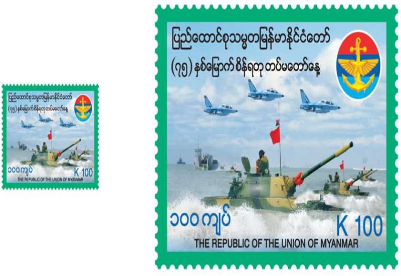 ပို့ဆောင်ရေးနှင့်ဆက်သွယ်ရေးဝန်ကြီးဌာန၊ မြန်မာ့စာတိုက်လုပ်ငန်း မှ (၇၅)နှစ်မြောက်၊ စိန်ရတု တပ်မတော်နေ့ အထိမ်းအမှတ် အထူးထုတ် စာပို့တံဆိပ်ခေါင်းသစ်(၃)မျိုး (၅၀၀/-ကျပ်တန်၊ ၂၀၀/-ကျပ်တန်၊ ၁၀၀/- ကျပ်တန်) အား ၂၀၂၀ ပြည့်နှစ်၊ မတ်(၂၇)ရက်၊ မြန်မာသက္ကရာဇ် ၁၃၈၁ ခုနှစ်၊ တန်ခူးလဆန်း(၄)ရက်(သောကြာနေ့)၊ နံနက် ၉ နာရီခွဲမှ စတင်၍ နေပြည်တော်ဗဟိုစာတိုက်ကြီး၊ ရန်ကုန်စာတိုက်ကြီး၊ မန္တလေး စာတိုက်ကြီးတို့နှင့် တိုင်းဒေသ ကြီး / ပြည်နယ်များရှိ စာတိုက်ကြီးများတွင် ရောင်းချပေးသွားမည်ဖြစ်သည်။