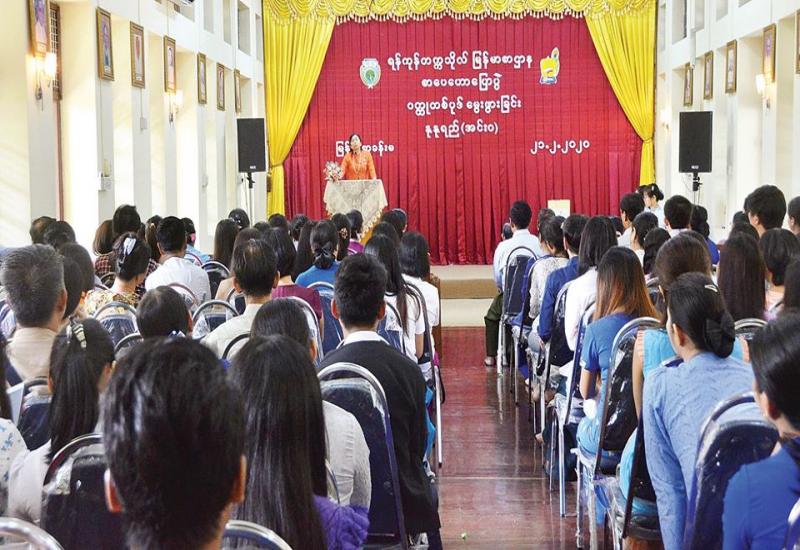 စာပေဟောပြောပွဲတွင် “ဝတ္ထုတစ်ပုဒ်မွေးဖွားခြင်း”အကြောင်းအရာနှင့် စပ်လျဉ်း၍ စာရေးဆရာမ နုနုရည်(အင်း၀)၊ ဆရာ ဆရာမ၊ ကျောင်းသား ကျောင်းသူများနှင့် တွေ့ဆုံမေးမြန်းခဲ့သည်များကို ဖော်ပြလိုက်ပါသည်။