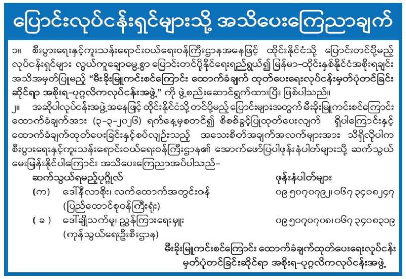 ပြောင်းလုပ်ငန်းရှင်များသို့ အသိပေးကြေညာချက်