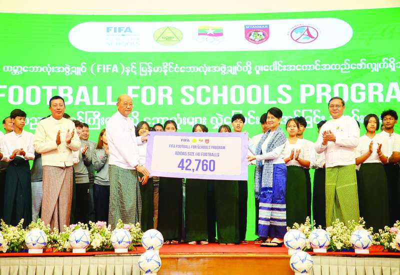 ကမ္ဘာ့ဘောလုံးအဖွဲ့ချုပ် (FIFA) နှင့် မြန်မာနိုင်ငံဘောလုံးအဖွဲ့ချုပ်တို့ ပူးပေါင်းအကောင်အထည်ဖော်လျက်ရှိသည့် Football For Schools Program ဖြင့် ပညာရေးဝန်ကြီးဌာနသို့ ဘောလုံးများ လွှဲပြောင်းပေးအပ်ခြင်းအခမ်းအနားကို ယနေ့မွန်းလွဲပိုင်းတွင် နေပြည်တော်ရှိ Hotel Max ၌ ကျင်းပသည်။
