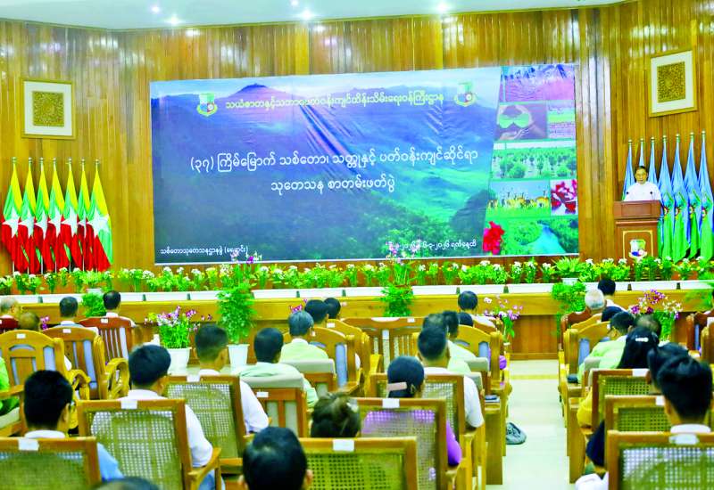 (၃၇) ကြိမ်မြောက် သစ်တော၊ သတ္တုနှင့် ပတ်ဝန်းကျင်ဆိုင်ရာ သုတေသနစာတမ်းဖတ်ပွဲ ဖွင့်ပွဲကို ယနေ့နံနက်ပိုင်းတွင် သစ်တောသုတေသနဌာန စုဝေးခန်းမရေဆင်း၌ ကျင်းပသည်။