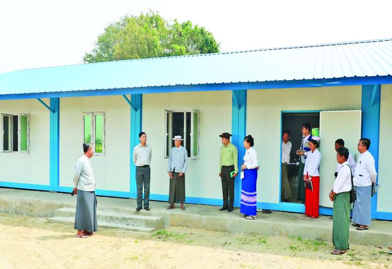 လူမှုဝန်ထမ်း၊ ကယ်ဆယ်ရေးနှင့် ပြန်လည်နေရာချထားရေးဝန်ကြီးဌာန ပြည်ထောင်စုဝန်ကြီး ဒေါက်တာစိုးဝင်းသည် တာဝန်ရှိသူများနှင့်အတူ ယနေ့နံနက်ပိုင်းတွင် နေပြည်တော် လယ်ဝေးမြို့နယ် အောင်မြင်ကုန်းကျေးရွာရှိ ငလျင်ဘေးဒဏ်သင့်ဒေသများ ပြန်လည်ထူထောင်ရေးအတွက် ထိုင်းနိုင်ငံက AHA Center မှတစ်ဆင့် ဆောက်လုပ်လှူဒါန်းထားသော အောင်မြင်ကုန်းကျေးရွာ အသင့်တပ်ဆင် ကျေးလက်ကျန်းမာရေးဆေးခန်း အဆောက်အအုံဆောက်လုပ်ပြီးစီးမှုအခြေအနေကို ကွင်းဆင်းကြည့်ရှုသည်။