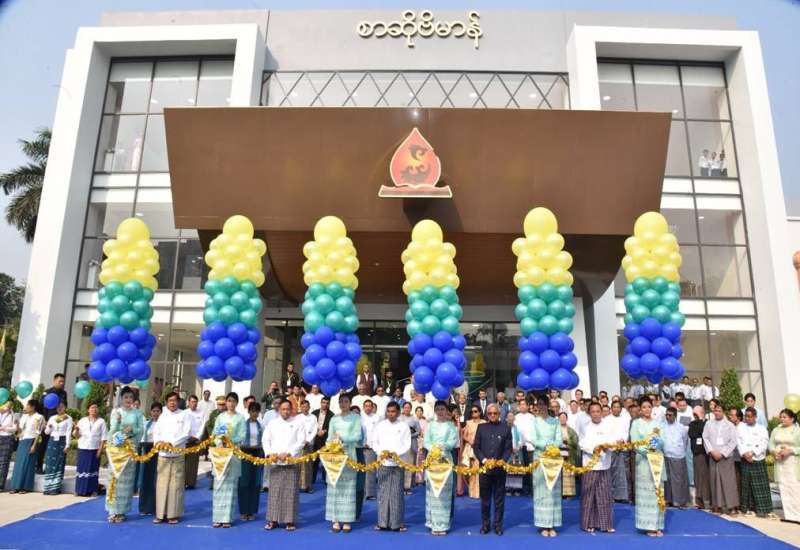 ပြန်ကြားရေးဝန်ကြီးဌာန၊ ပုံနှိပ်ရေးနှင့်ထုတ်ဝေရေးဦးစီးဌာန၏ စာဆိုဗိမာန်အဆောက်အဦ ဖွင့်ပွဲအခမ်းအနားကို ယနေ့နံနက်ပိုင်းတွင် ရန်ကုန်တိုင်းဒေသကြီး၊ မင်္ဂလာတောင်ညွန့်မြို့နယ်၊ ဗိုလ်မင်းခေါင်လမ်းရှိ အဆိုပါအဆောက်အဦ၌ကျင်းပရာ နိုင်ငံတော်ဝန်ကြီးချုပ် ဦးညိုစောနှင့်ဇနီး တက်ရောက်သည်။