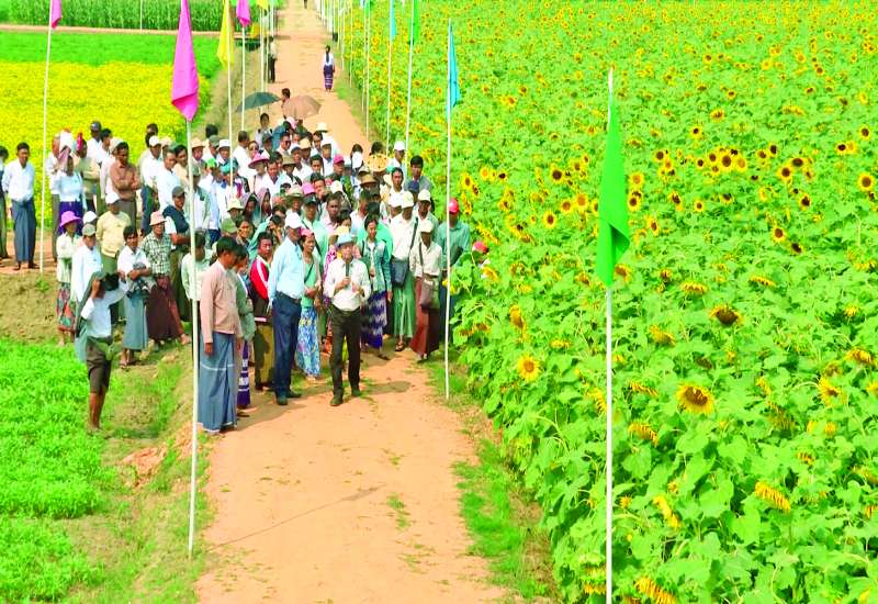 စိုက်ပျိုးရေး၊ မွေးမြူရေးနှင့်ဆည်မြောင်းဝန်ကြီးဌာန ဒုတိယဝန်ကြီး ဒေါက်တာတင်ထွဋ်သည် ယနေ့နံနက်ပိုင်းတွင် နေပြည်တော်ကောင်စီနယ်မြေ ပုဗ္ဗသီရိမြို့နယ် ဘဲကုန်းကျေးရွာ တောင်သူစံပြစိုက်ခင်းတွင် စိုက်ပျိုးထားသည့် မျိုးမြှင့်တင် ရွေးချယ်ထားသော ၇၄ ရက်သားရှိသည့် ဆင်းရွှေကြာ-၂ နေကြာ စိုက်ခင်းနှင့် စပ်မျိုးပြောင်း ၁၄ မျိုး အချင်းချင်းမျိုးကူးစပ်ခြင်းနည်းဖြင့် ဆောင်ရွက်၍ ပြောင်းဖူး Composite မျိုးများရရှိရန် မွေးမြူခြင်းစိုက်ခင်း၊ ပန်းနှမ်း၊ ပဲယဉ်းနီ၊ ပဲပုပ်ရေဆင်း ၁၅ ပေါင်ဖော်ကြဲပက်စိုက်နည်းစနစ် စိုက်ခင်းများကို ကြည့်ရှုစစ်ဆေးသည်။