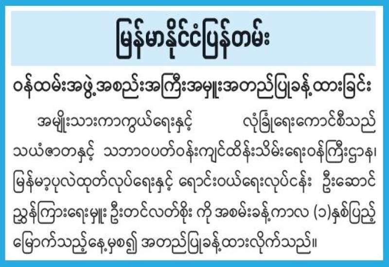 ရန်ကုန်မြို့နှင့် မန္တလေးမြို့အတွက် ရည်ညွှန်းလက်ကားဈေးနှုန်းများနှင့် ပြည်ထောင်စုနယ်မြေ နေပြည်တော်၊ တိုင်းဒေသကြီး/ပြည်နယ် မြို့တော်များအတွက် ရည်ညွှန်းလက်လီဈေးနှုန်းများ