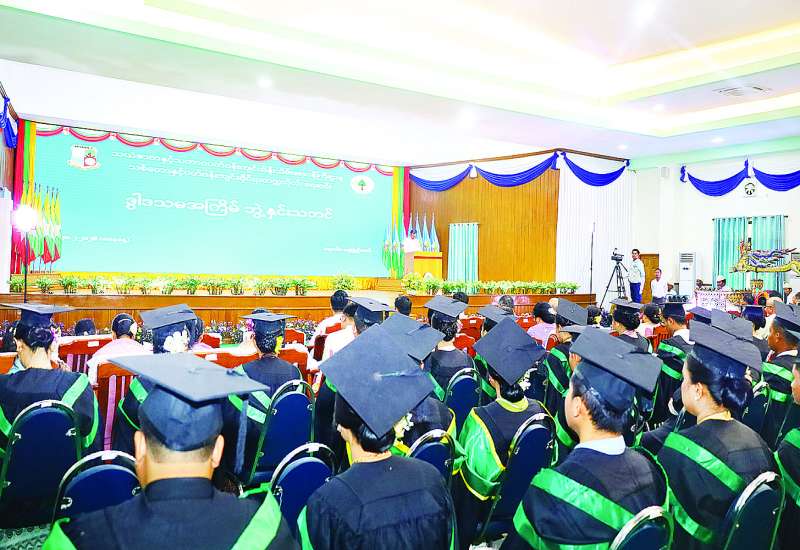 ဒွါဒသမအကြိမ် ဘွဲ့နှင်းသဘင်နှင့် ၂၀၁၉ - ၂၀၂၀ ပညာသင်နှစ်မှ ၂၀၂၄ - ၂၀၂၅ ပညာသင်နှစ်အထိ ဘွဲ့ကြိုပဉ္စမနှစ်များတွင် ပထမ၊ ဒုတိယ၊ တတိယရရှိသူ ဘွဲ့ရမောင်မယ်များအား ဆုချီးမြှင့်ပွဲအခမ်းအနားကို ယနေ့နံနက်ပိုင်းတွင် သစ်တောနှင့်ပတ်ဝန်းကျင်ဆိုင်ရာတက္ကသိုလ် (ရေဆင်း) ဘွဲ့နှင်းသဘင်ခန်းမ၌ ကျင်းပရာ သယံဇာတနှင့်သဘာဝပတ်ဝန်းကျင်ထိန်းသိမ်းရေးဝန်ကြီးဌာန ဒုတိယဝန်ကြီး ဦးမင်းသူ၊ အမြဲတမ်းအတွင်းဝန်၊ ဌာနဆိုင်ရာ တာဝန်ရှိသူများ၊ ပါမောက္ခချုပ်၊ တက္ကသိုလ်ပညာရေးအဖွဲ့ဝင်များ၊ သစ်တောနှင့်ပတ်ဝန်းကျင်ဆိုင်ရာတက္ကသိုလ်မှ ဆရာ ဆရာမများ၊ ဆုရရှိသူများ၊ ဘွဲ့ရမောင်မယ်များနှင့် မိဘများ တက်ရောက်ကြသည်။