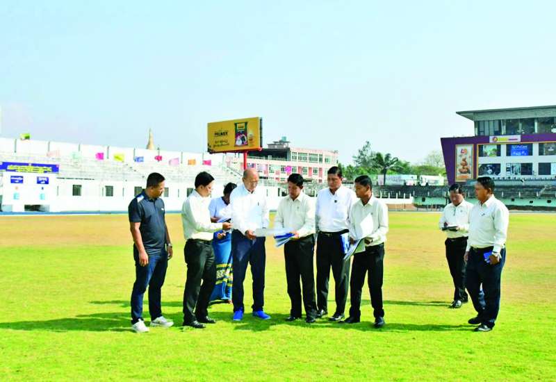 မြန်မာနိုင်ငံအိုလံပစ်ကော်မတီဥက္ကဋ္ဌ အားကစားနှင့်လူငယ်ရေးရာဝန်ကြီးဌာနနှင့် ဟိုတယ်နှင့်ခရီးသွားလာရေးဝန်ကြီးဌာန ပြည်ထောင်စုဝန်ကြီး Jeng Phang နော်တောင်သည် မွန်ပြည်နယ် လူမှုရေးရာဝန်ကြီး၊ တာဝန်ရှိသူများနှင့်အတူ ယမန်နေ့မွန်းလွဲပိုင်းက မွန်ပြည်နယ် ရာမညအားကစားကွင်းကို ကြည့်ရှုသည်။