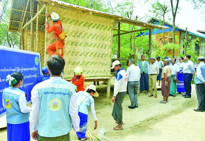လူမှုဝန်ထမ်း၊ ကယ်ဆယ်ရေးနှင့် ပြန်လည်နေရာချထားရေးဝန်ကြီးဌာန ပြည်ထောင်စုဝန်ကြီး ဒေါက်တာစိုးဝင်းသည် ဒုတိယဝန်ကြီး ဒေါက်တာသန်းစိုး၊ နေပြည်တော်ကောင်စီဝင် ဦးဇေယျာလင်း တို့နှင့်အတူ တပ်ကုန်းမြို့နယ် အေးချမ်းသာစံပြကျေးရွာ၌ ကျင်းပသည့် လေပြင်းဘေးကြိုတင် ကာကွယ်ရေးဆိုင်ရာ အားဖြည့်ဆောင်ရွက်ခြင်း လုပ်ငန်းစီမံချက်ဖွင့်ပွဲအခမ်းအနားသို့ တက်ရောက်သည်။