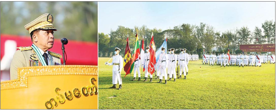လူတိုင်းတွင် မျှော်မှန်းစိတ်များရှိကြပြီး ကြီးပွားတိုးတက်လိုစိတ်များ ရှိကြ ကြောင်း၊ မိမိဘဝအောင်မြင်တိုး တက်စေရေး ကြိုးပမ်းဆောင်ရွက်ရာတွင် အဓိကလိုအပ် ချက်သည် ရောင့်ရဲတင်း တိမ်တဲ့စိတ်နှင့် တိုးတက်အောင်မြင်အောင် ရိုးရိုးသားသား ကြိုးစား ဆောင်ရွက်လိုစိတ်မွေးမြူခြင်းပင်ဖြစ်ကြောင်း၊ ရောင့်ရဲတင်းတိမ်စိတ်သည် လူတစ်ဦး ကို မတော်လောဘစိတ်များ မဖြစ်စေရန် တားမြစ်နိုင်ပြီး ရိုးဂုဏ်သည် လူတစ်ဦးကို ထာဝရ တန်ဖိုးရှိနေစေမည် ဖြစ်သည်ကို မမေ့မလျော့ကြရန်လိုကြောင်း၊ ရောင့်ရဲ တင်းတိမ်သည့် စိတ်ဖြင့် ရိုးသား၊ ကြိုးစားစွာ ဆောင်ရွက်ရမည်ဖြစ်ပြီး မိမိဝင်ငွေနှင့် ထွက်ငွေမျှတအောင် နေထိုင်သွားကြရန်လိုအပ်သကဲ့သို့ မိမိတို့၏ကြိုးစားမှု၊ စည်းကမ်း လိုက်နာမှု၊ ကျန်းမာရေး ကောင်းမွန်အောင် နေထိုင်စားသောက်မှုများအပေါ်မူတည်ပြီး အောင်မြင်မှုများရရှိနိုင်မည် ဖြစ်ကြောင်း၊ ထို့ကြောင့် အသိတရား၊ သတိတရား လက်ကိုင်ထားပြီး မိမိတို့၏ကောင်းမွန် သည့် အလေ့အကျင့်ကောင်းများကို အသုံးချကာ မိမိတို့တာဝန်ထမ်းဆောင်သည့်တပ်၊ တပ်မတော်၊ ဒေသနှင့် တိုင်းပြည်အကျိုး စီးပွားတိုးတက်အောင် တာဝန်ကျေပွန်စွာ ထမ်းဆောင်ကြရန်နှင့် နိုင်ငံတော်နှင့် တပ်မတော်အပေါ် သစ္စာစောင့်သိသွားရန် အလေး အနက်ထား မှာကြားလိုကြောင်း။