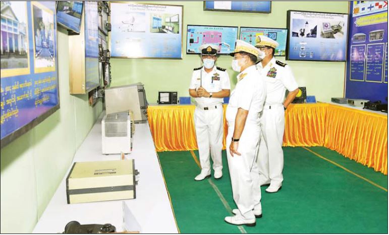၎င်းနောက် နိုင်ငံတော်စီမံအုပ်ချုပ်ရေးကောင်စီဥက္ကဋ္ဌ တပ်မတော်ကာကွယ်ရေး ဦးစီးချုပ်နှင့်အဖွဲ့ဝင် များသည် တပ်တော်ဝင်စစ်ရေယာဉ်များဖြစ်သည့် ရေငုပ်သင်္ဘော စစ်ရေယာဉ်(မင်းရဲကျော်ထင်) အပါအဝင် ကမ်းလွန်ရေယာဉ်တစ်စီး၊ မြစ်တွင်းသွား ကင်းလှည့် ရေယာဉ် ၂ စီးနှင့် မြစ်တွင်းအမြန်သွား ကင်းလှည့်ရေယာဉ် ၂ စီး တို့အား လှည့်လည်ကြည့်ရှုကြရာ တာဝန်ရှိသူများ က လိုက်လံရှင်းလင်း ပြသကြသည်။