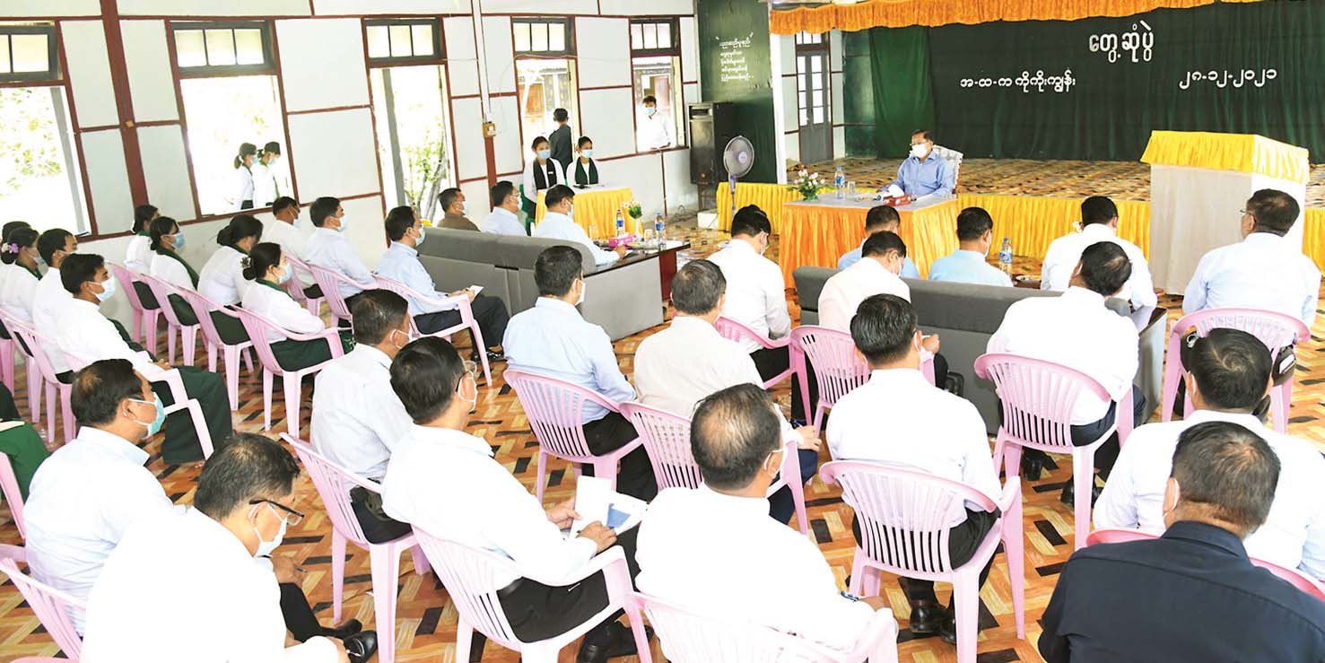 ကျန်းမာရေးကဏ္ဍနှင့် ပတ်သက်၍ ယခင်ကထက် လမ်းပန်းဆက်သွယ် ရေးနှင့် နေရေး၊ စားရေးတို့တွင် အဆင်ပြေမှုရှိလာပြီဖြစ်သဖြင့် ရုပ်ပိုင်း၊ စိတ်ပိုင်း ဆိုင်ရာ တွင်များစွာတိုးတက် ကောင်းမွန်လာပြီး ကျန်းမာရေးဆိုင်ရာများတွင်လည်း တိုးတက်ကောင်းမွန်လာသည်ကို တွေ့ရှိ ရသဖြင့် ဝမ်းသာပါကြောင်း၊ ကျန်းမာရေး ဝန်ထမ်းများကို တာဝန်ပေးအပ်ရာတွင် အလှည့်ကျ စနစ်ဖြင့်မဟုတ်ဘဲ နှစ်ကာလ အပိုင်းအခြားဖြင့် တာဝန်ထမ်းဆောင်စေရမည် ဖြစ်ကြောင်း၊ ထိုသို့ဆောင်ရွက်မှ သာလျှင် တာဝန်ထမ်းဆောင်သည့် ဝန်ထမ်းများအနေဖြင့် ဒေသခံလူထု၏ ကျန်းမာ ရေး အခြေအနေများနှင့် လိုအပ်ချက်များကို အတွင်းကျကျသိရှိနိုင်မည်ဖြစ်ပြီး လုပ်ငန်း တာဝန်များကိုလည်း ဖိဖိစီးစီးဖြင့် အပြည့်အဝထမ်းဆောင်နိုင်မည်ဖြစ်ကြောင်း၊ ဒေသ၏ ကျန်းမာရေး၊ လူမှုစီးပွားဘဝ ဖွံ့ဖြိုးတိုးတက်ရေးတို့အတွက် တပ်မတော်နှင့် ဌာနဆိုင်ရာ ဝန်ထမ်းများ ပူးပေါင်း၍ ညီညီညွတ်ညွတ်ဖြင့် အတူတကွ ဝိုင်းဝန်းဆောင်ရွက် သွားကြရမည် ဖြစ်ကြောင်း မှာကြားသည်။