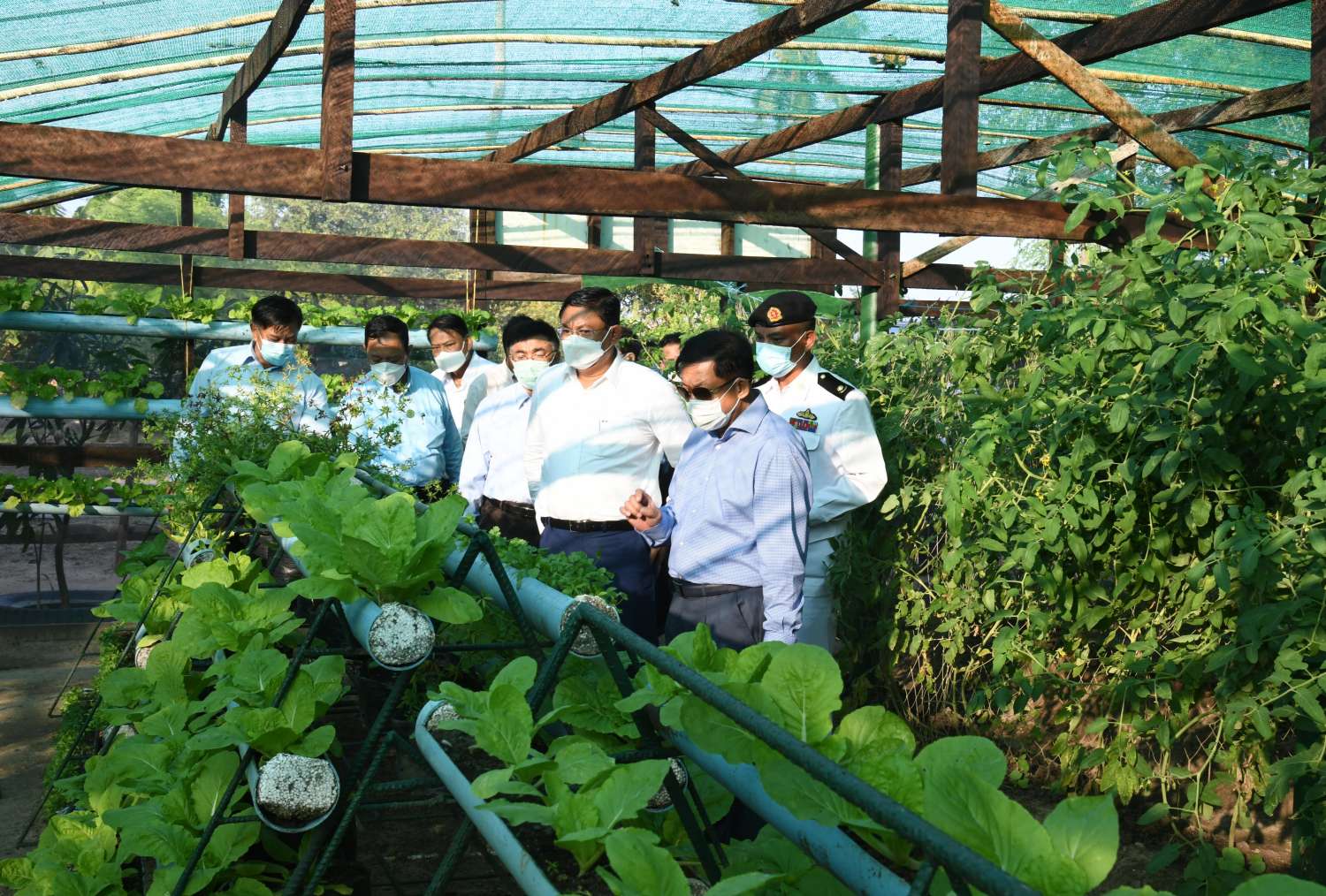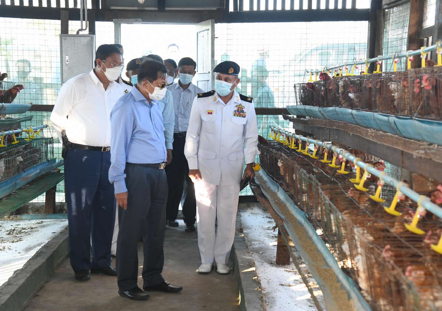 ထို့နောက် နိုင်ငံတော်စီမံအုပ်ချုပ်ရေးကောင်စီဥက္ကဋ္ဌ၊ နိုင်ငံတော်ဝန်ကြီးချုပ်နှင့် အဖွဲ့ဝင်များသည် နယ်မြေခံရေတပ်စခန်းဌာနချုပ်အတွင်း ဥစားကြက်များ မွေးမြူထား ရှိမှုနှင့် Green House များအတွင်း သီးနှံများစိုက်ပျိုးထားရှိမှုအခြေအနေတို့ကို လိုက်လံကြည့်ရှုစစ်ဆေးပြီး တာဝန်ရှိ သူများ၏ တင်ပြချက် များအပေါ် လိုအပ်သည်များ မှာကြားဖြည့်ဆည်း ဆောင်ရွက်ပေးခဲ့ကြာင်း သတင်းရရှိသည်။