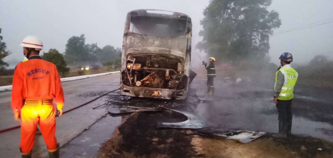 ရန်ကုန် -နေပြည်တော် အမြန်လမ်းမကြီးပေါ်တွင် Express ယာဉ်တစ်စီးမီးလောင်မှုဖြစ်ပွား
