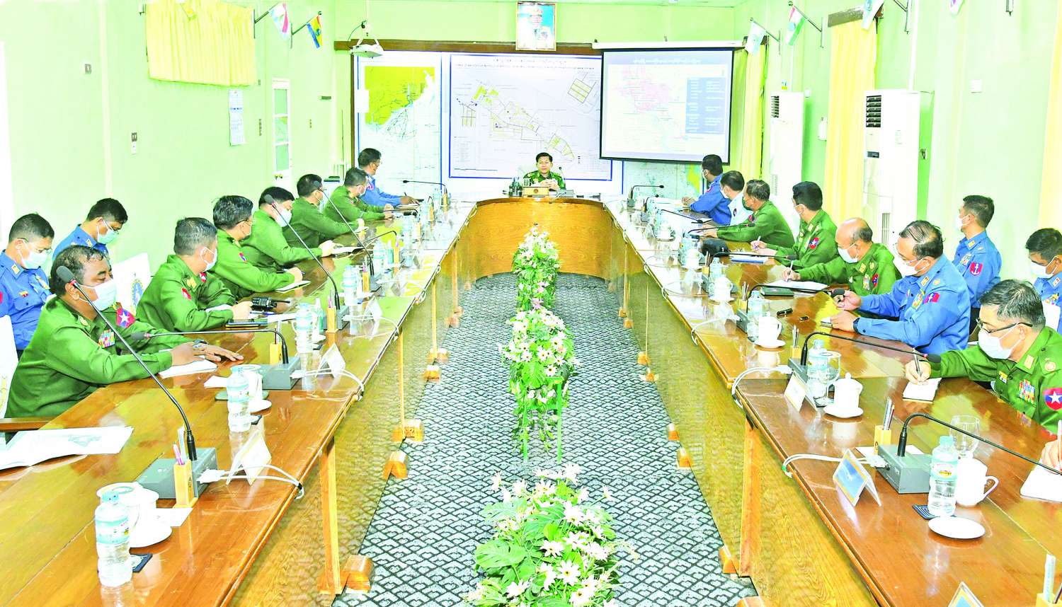 နိုင်ငံတော်စီမံအုပ်ချုပ်ရေးကောင်စီဥက္ကဋ္ဌ တပ်မတော်ကာကွယ်ရေးဦးစီးချုပ် ဗိုလ်ချုပ်မှူးကြီး မင်းအောင်လှိုင် သန်လျင်တပ်နယ်နှင့် ဒလတပ်နယ်တို့ရှိ နယ်မြေခံရေတပ်စခန်းဌာနချုပ်များမှ ဌာနချုပ်မှူးများနှင့် အရာရှိကြီးများအား တွေ့ဆုံအမှာစကားပြောကြား