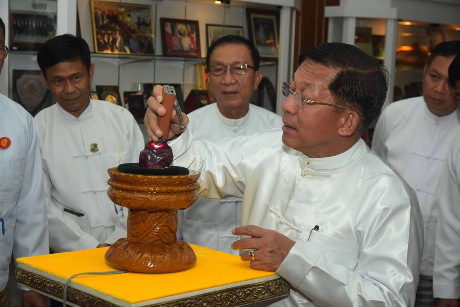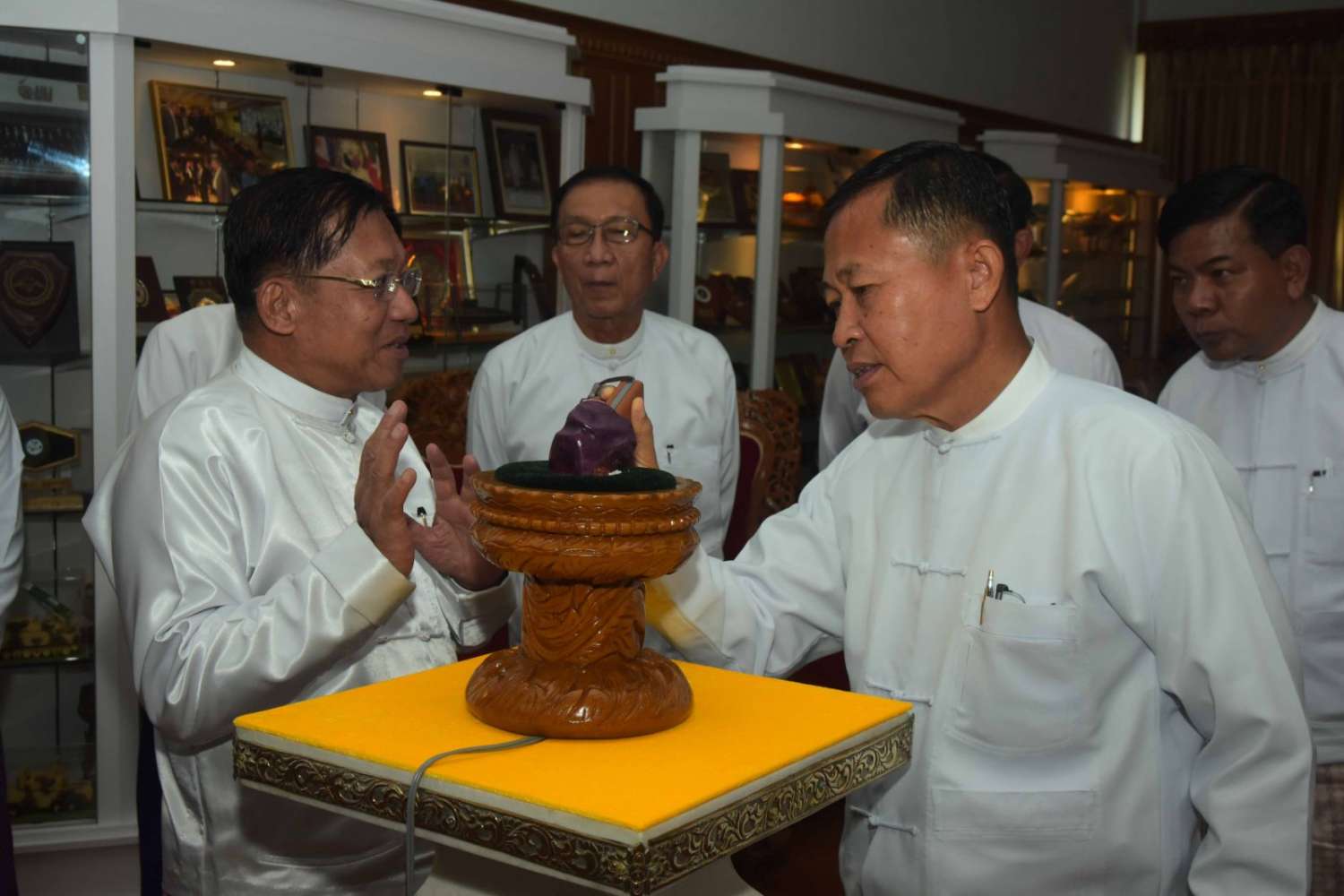 ယင်းနောက် နိုင်ငံတော်စီမံအုပ်ချုပ်ရေးကောင်စီဥက္ကဋ္ဌ နိုင်ငံတော်ဝန်ကြီးချုပ်နှင့် အခမ်းအနားတက်ရောက်လာကြသူများသည် ပတ္တမြားကြီးအား ကြည့်ရှုကြသည်။