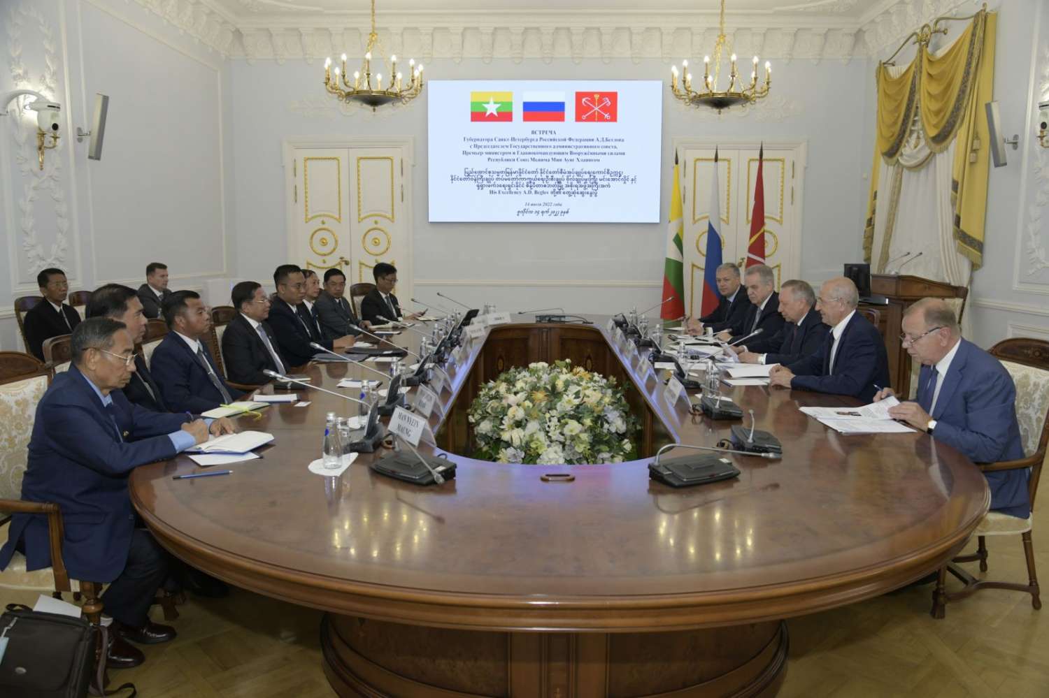ထိုသို့ တွေ့ဆုံဆွေးနွေးရာတွင် စိန့်ပီတာစဘတ်မြို့ အစိုးရအဖွဲ့အနေဖြင့် နိုင်ငံတော် စီမံအုပ်ချုပ်ရေးကောင်စီဥက္ကဋ္ဌ၊ နိုင်ငံတော်ဝန်ကြီးချုပ်နှင့် ကိုယ်စားလှယ်အဖွဲ့ဝင်များအား ခင်မင်ရင်းနှီးစွာ ကြိုဆိုကြောင်းနှင့် ရုရှား-မြန်မာ နှစ်နိုင်ငံ ကောင်းမွန်သည့် ဆက်ဆံရေး သမိုင်းကြောင်းသည် နှစ်ပေါင်း ၇၅ နှစ် ကျော်ရှိပြီဖြစ်သည့် အခြေအနေများ၊ စိန့်ပီတာစဘတ်မြို့အခြေစိုက် ကုမ္ပဏီများအနေဖြင့် မြန်မာနိုင်ငံရှိ စိုက်ပျိုးရေးလုပ်ငန်းများတွင် လာရောက်ပူးပေါင်း ဆောင်ရွက်လိုသည့် အခြေအနေများအပြင် ကျန်းမာရေးစောင့်ရှောက်မှုနယ်ပယ်၊ ပညာရေးနယ်ပယ်၊ ခရီးသွားလုပ်ငန်း ဖွံ့ဖြိုးတိုးတက်မှုနယ်ပယ်၊ စီးပွားရေး ဖွံ့ဖြိုးတိုးတက်မှုနယ်ပယ်၊ ဘာသာသာသနာ ထွန်းကားပြန့်ပွားရေးအတွက် ယဉ်ကျေးမှုဖလှယ်ရေးရာနယ်ပယ် စသည်ဖြင့် နယ်ပယ်ပေါင်းစုံတွင် ပူးပေါင်းဆောင်ရွက်မှုများကို တိုးမြှင့်ဆောင်ရွက်နိုင်မည့် အခြေအနေများ။