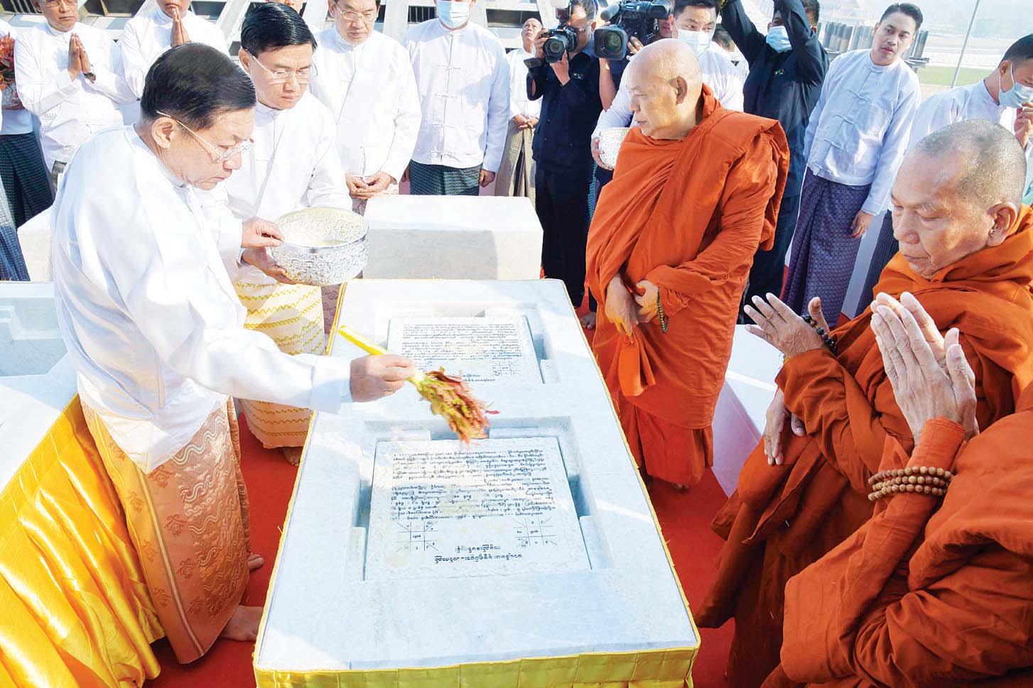 ပြည်ထောင်စုနယ်မြေ၊ နေပြည်တော်၊ ဒက္ခိဏသီရိမြို့နယ်ရှိ မာရဝိဇယဗုဒ္ဓဥယျာဉ်တော်အတွင်း တည်ထားကိုးကွယ်ရန် ဆောင်ရွက်လျက်ရှိသည့် မာရဝိဇယဗုဒ္ဓရုပ်ပွားတော်မြတ်ကြီး ရတနာပလ္လင်တော်ထက် အလယ်ဗဟိုဌာနများတွင် ဦးဆောင်ဘုရားဒါယကာ နိုင်ငံတော်စီမံအုပ်ချုပ်ရေးကောင်စီဥက္ကဋ္ဌ နိုင်ငံတော်ဝန်ကြီးချုပ် ဗိုလ်ချုပ်မှူးကြီး မင်းအောင်လှိုင် အမှူးပြုသည့် ပြည်ထောင်စုသမ္မတမြန်မာနိုင်ငံတော် တစ်ဝန်းလုံးမှ ဌာပနာတော်ကုသိုလ်ရှင်များလှူဒါန်းထားသည့် ဌာပနာတော်များ သွင်းလှူပူဇော်ခြင်း မဟာမင်္ဂလာအခမ်းအနားကို ယနေ့နံနက်ပိုင်းတွင် အဆိုပါ ဗုဒ္ဓဥယျာဉ်တော်အတွင်းရှိ မာရဝိဇယဗုဒ္ဓရုပ်ပွားတော်မြတ်ကြီး တည်ထားကိုးကွယ်သည့် ရတနာပလ္လင်တော်ထက်၌ ကျင်းပပြုလုပ်သည်။