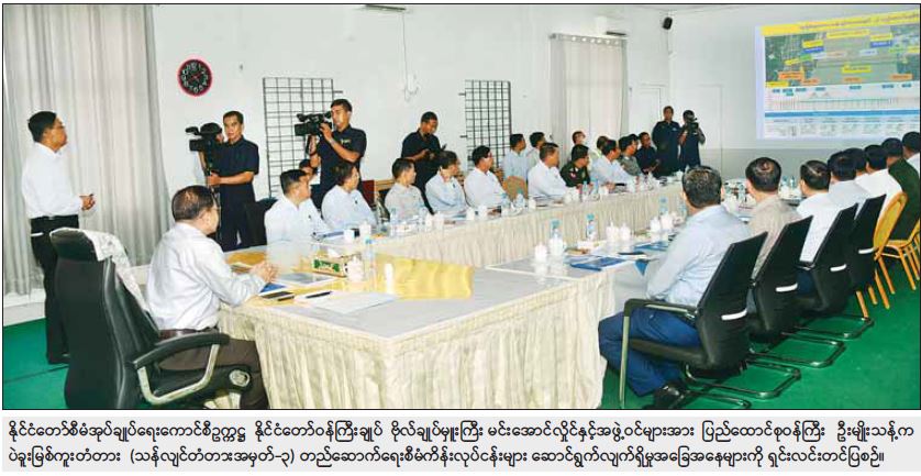 ထို့နောက် နိုင်ငံတော်စီမံအုပ်ချုပ်ရေးကောင်စီဥက္ကဋ္ဌ နိုင်ငံတော်ဝန်ကြီးချုပ်နှင့် အဖွဲ့ဝင်များသည် စီမံကိန်းတည်ဆောက်ပြီးစီးမှုအခြေအနေများကို လိုက်လံကြည့်ရှုစစ်ဆေးခဲ့ပြီး တာဝန်ရှိသူများ၏ တင်ပြချက်များအပေါ် လိုအပ်သည်များ လမ်းညွှန်မှာကြားသည်။