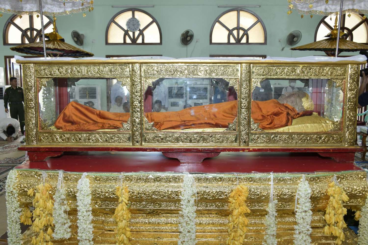 ထို့နောက် နိုင်ငံတော်စီမံအုပ်ချုပ်ရေးကောင်စီဥက္ကဋ္ဌ နိုင်ငံတော်ဝန်ကြီးချုပ်သည် ဗန်းမော်ဆရာတော်ဘုရားကြီး၏ ဥတုဇရုပ်ကလပ်တော်အား လာရောက်ဖူးမြော်ကြမည့် ရန်ကုန်မြို့မှ ကြွရောက်လာသည့် နိုင်ငံတော်သံဃမဟာနာယကအဖွဲ့ အကျိုးတော်ဆောင် သန်လျင်မြို့၊ မင်းကျောင်းပထမပြန်စာသင်တိုက် ဦးစီးပဓာနနာယကဆရာတော် အဂ္ဂမဟာပဏ္ဍိတအဂ္ဂမဟာသဒ္ဓမ္မဇောတိကဓဇ ဒေါက်တာဘဒ္ဒန္တစန္ဒိမာဘိဝံသ အမှူးပြုသည် ဆရာတော်၊ သံဃာတော်များအားခရီးဦးကြိုဆိုသည်။ ၎င်းနောက် သန်လျင်မင်းကျောင်းဆရာတော်ကြီးအား ဗန်းမော်ဆရာတော်ဘုရားကြီး၏ အန္တိမအခြေအနေများကို အဂ္ဂိဈာပနပူဇာသဘင်အခမ်းအနားကျင်းပပြုလုပ်မည့် တင်ပြလျှောက်ထားပြီး ဆရာတော်ကြီး၏ဩဝါဒခံယူသည်။