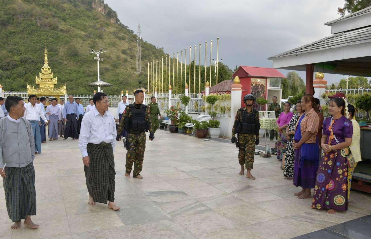 ယနေ့ နေ့လယ်ပိုင်းတွင်လည်း နိုင်ငံတော်စီမံအုပ်ချုပ်ရေးကောင်စီဥက္ကဋ္ဌ နိုင်ငံတော်ဝန်ကြီးချုပ်နှင့် အဖွဲ့ဝင်များသည် ဟိုပုံးမြို့ရှိ ဟိုပုံးရေထွက်ကြီးသို့ ရောက်ရှိကြပြီး ရေထွက်ထိန်းသိမ်းထားရှိမှုအခြေအနေများကို ကြည့်ရှုစစ်ဆေးရာ တာဝန်ရှိသူများက ရှင်းလင်းတင်ပြကြသည်။