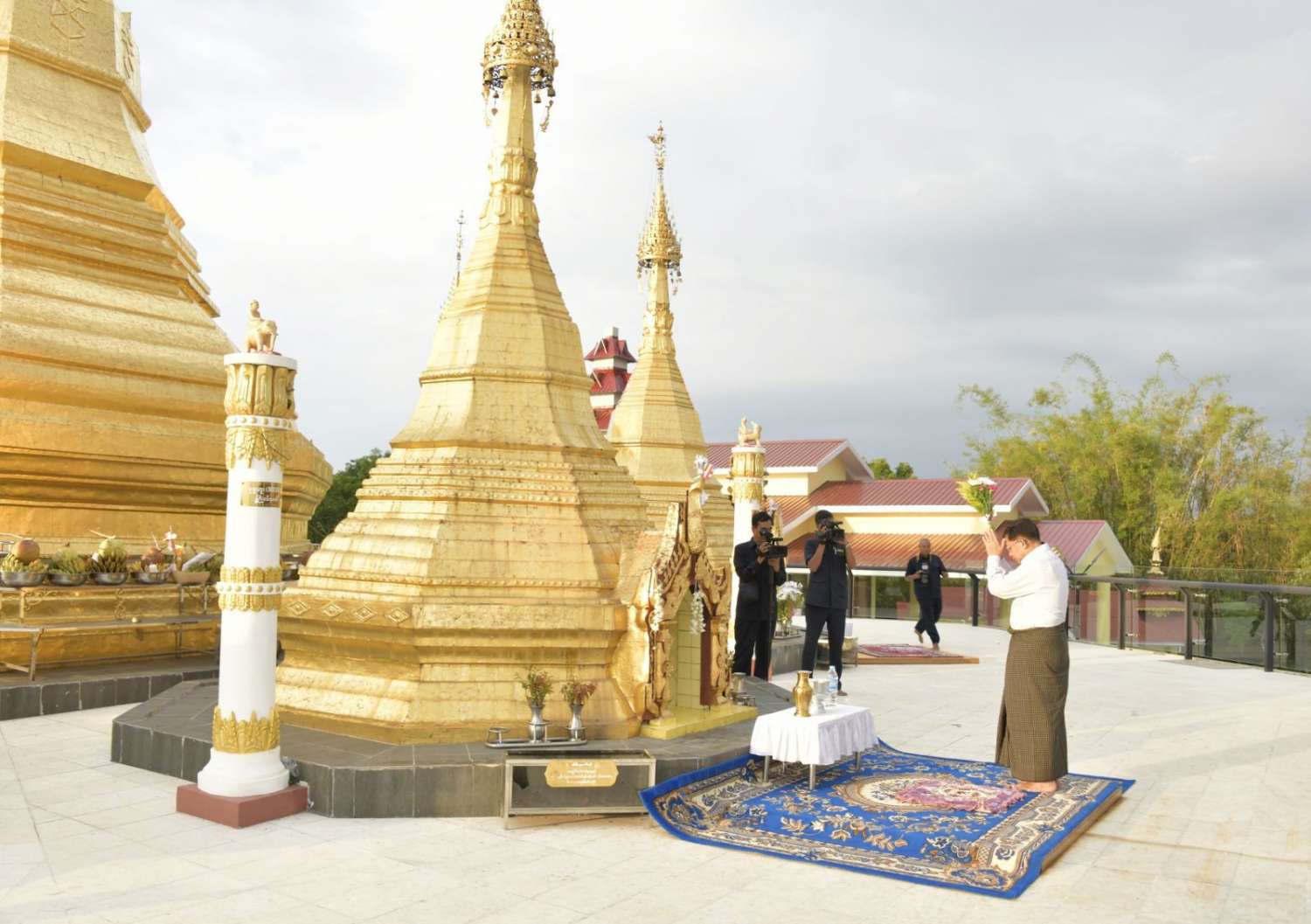 အလားတူ နိုင်ငံတော်စီမံအုပ်ချုပ်ရေးကောင်စီဥက္ကဋ္ဌ နိုင်ငံတော်ဝန်ကြီးချုပ် ဗိုလ်ချုပ်မှူးကြီး မင်းအောင်လှိုင်နှင့် အဖွဲ့ဝင်များသည် မေ ၂၈ ရက်ညနေပိုင်းကလည်း ရှမ်းပြည်နယ် (တောင်ပိုင်း)၊ တောင်ကြီးမြို့ ကျက်သရေဆောင် စူဠာမုနိ လောကချမ်းသာစေတီတော်နှင့် ရွှေဘုန်းပွင့်စေတီတော်မြတ်ကြီးတို့သို့ သွားရောက်ဖူးမြော်ကြည်ညိုပြီး ပန်း၊ ရေချမ်းများ ကပ်လှူပူဇော်သည်။