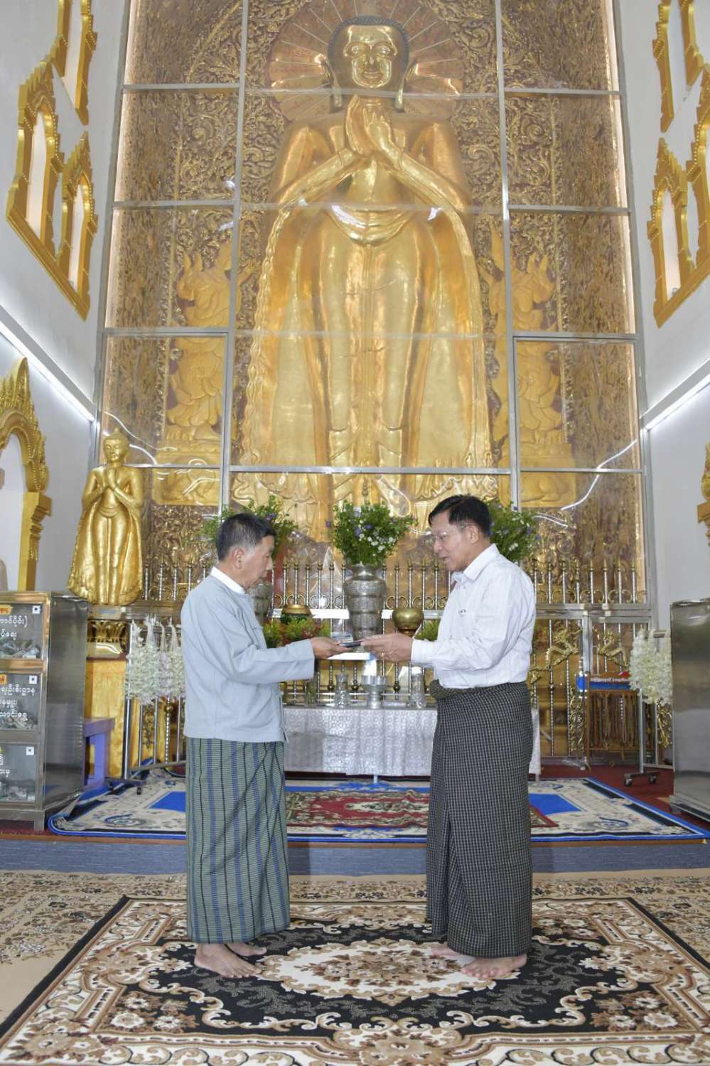 ယင်းနောက် အလှူငွေများပေးအပ်လှူဒါန်းပြီး စေတီတော်ကြီးများအား လက်ယာရစ် လှည့်လည်ဖူးမြော်ကြည်ညို၍ တာဝန်ရှိသူများ၏ တင်ပြချက်များအပေါ် စေတီတော်ကြီး များအား ရေရှည်တည်တံ့ခိုင်မြဲပြီး ကြည်ညိုသပ္ပါယ်ဖွယ်ဖြစ်စေရေး ထိန်းသိမ်းဆောင်ရွက် ရန်အတွက် လိုအပ်သည်များကိုမှာကြားခဲ့သည်။ ထို့နောက် နိုင်ငံတော်စီမံအုပ်ချုပ်ရေး ကောင်စီဥက္ကဋ္ဌ နိုင်ငံတော်ဝန်ကြီးချုပ်သည် စေတီတော်ကြီးများရှိ ဧည့်သည်တော်မှတ်တမ်း စာအုပ်တွင် လက်မှတ်ရေးထိုးပူဇော်ခဲ့ကြောင်း သတင်းရရှိသည်။
