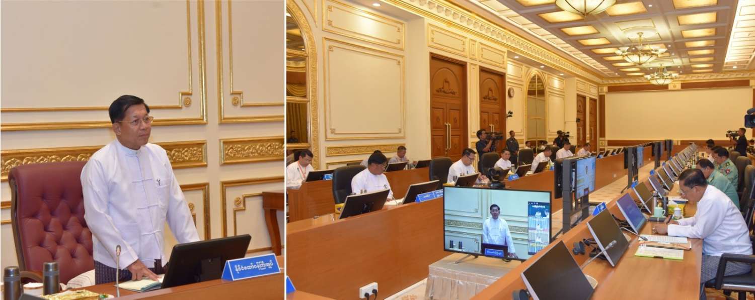 ဦးစွာ နိုင်ငံတော်စီမံအုပ်ချုပ်ရေးကောင်စီဥက္ကဋ္ဌ နိုင်ငံတော်ဝန်ကြီးချုပ်က အဖွင့်အမှာစကားပြောကြားရာတွင် သားငါးကဏ္ဍကုန်ထုတ်လုပ်မှုနှင့် စိုက်ပျိုးရေးကဏ္ဍ ကုန်ထုတ်လုပ်မှု တိုးမြှင့်ရေးအတွက် ပြည်နယ်နှင့် တိုင်းဒေသကြီးအစိုးရများအလိုက် ဆောင်ရွက်မည့်ကိစ္စရပ်များနှင့်ပတ်သက်သည့် ညှိနှိုင်းအစည်းအဝေးဖြစ်ကြောင်း၊ တစ်ဖက်မှလည်း ကုန်ဈေးနှုန်းကျဆင်းစေရေး ဆောင်ရွက်ရန်ဖြစ်ကြောင်း၊ နိုင်ငံတော်၏လိုအပ်ချက်အရ နိုင်ငံတော်စီမံအုပ်ချုပ်ရေးကောင်စီက နိုင်ငံတော်တာဝန်ကို ထမ်းဆောင်ပြီးနောက်ပိုင်းတွင် ပြည်တွင်းမှသဘောထားကွဲလွဲသည့် အဖွဲ့အစည်းများက စီးပွားရေးကဏ္ဍထိခိုက်အောင် ဆောင်ရွက်ခြင်းများရှိသကဲ့သို့ ပြည်ပမှလည်း အကြောင်းအမျိုးမျိုးပြပြီး စီးပွားရေးပိတ်ဆို့ခြင်းများ၊ ထောက်ပံ့မှုများကို ရပ်ဆိုင်းခြင်းများနှင့် ပူးပေါင်းဆောင်ရွက်မှုများ ရပ်ဆိုင်းခြင်းများကို ဆောင်ရွက်ခဲ့ကြောင်း၊ ထို့ပြင် ကုန်သွယ်မှုနှင့်ပတ်သက်၍ ဆောင်ရွက်ရာတွင်လည်းရရှိသည့် ငွေများကိုလည်း ကန့်သတ်မှုများ ဆောင်ရွက်ခြင်းကြောင့် နိုင်ငံခြားငွေများကို အသုံးပြုရာတွင် ကန့်သတ်ချက်များ ဖြစ်ပေါ်လာခဲ့ကြောင်း၊ ငွေကြေးကွာဟချက်များအပေါ်မူတည်၍ ကုန်သွယ်ရေးတွင် ငွေကြေးကစားသူများက အဆိုပါအခြေအနေကို ကိုယ်ကျိုးအတွက် အမြတ်ထုတ်ရန် အသုံးချလာသည်ကို တွေ့ရှိရကြောင်း၊ ဘဏ်လုပ်ငန်းများ ထိခိုက်အောင်လည်း ဆောင်ရွက်ခဲ့ကြကြောင်း။
