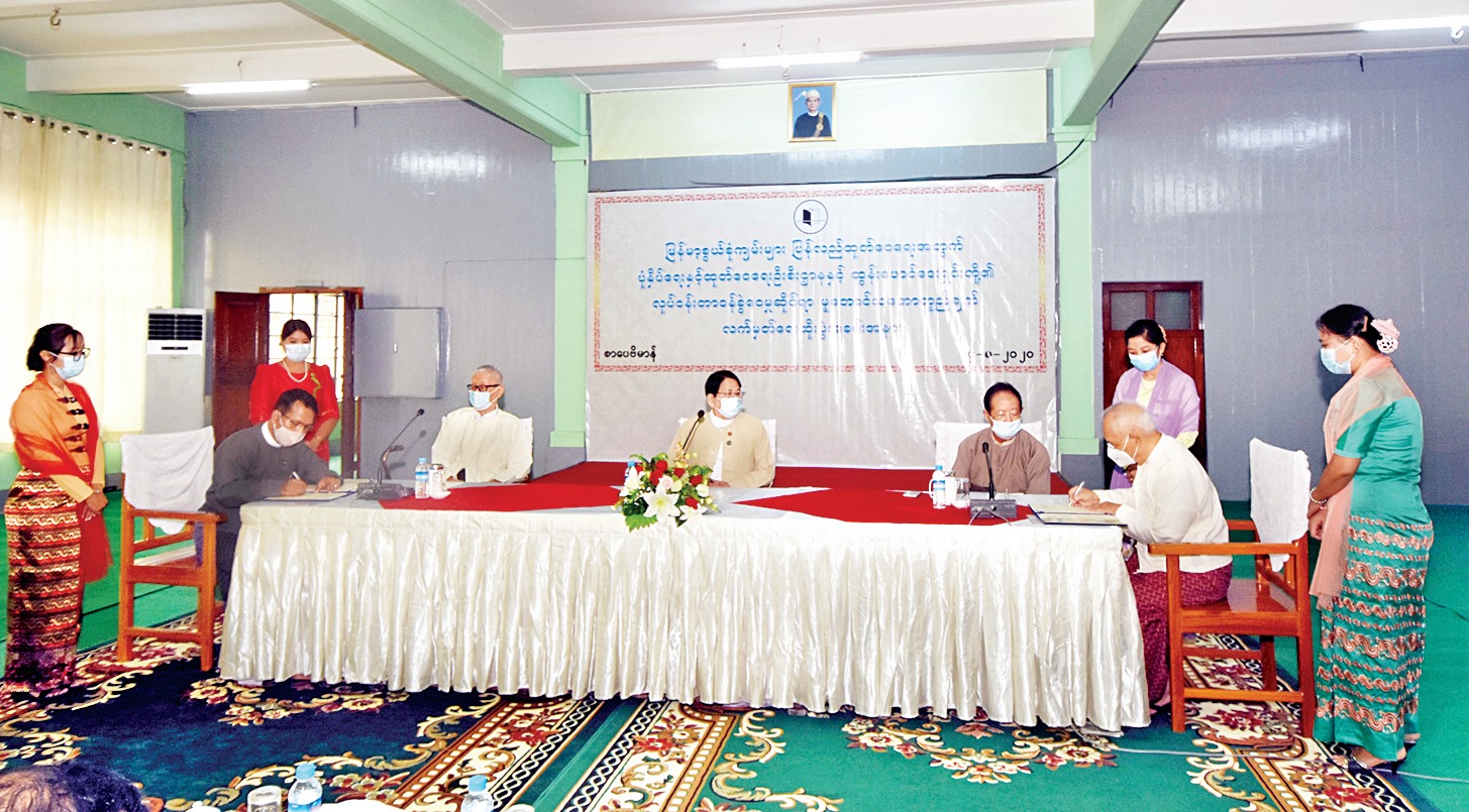 မြန်မာ့စွယ်စုံကျမ်းများ ပြန်လည်ထုတ်ဝေရေးအတွက် ပုံနှိပ်ရေးနှင့်ထုတ်ဝေရေးဦးစီးဌာန စာပေဗိမာန်နှင့် ထွန်းဖောင်ဒေးရှင်းတို့၏ လုပ်ငန်းတာဝန်ခွဲဝေရေးဆိုင်ရာ မူဘောင်သဘောတူညီချက် လက်မှတ်ရေးထိုးပွဲအခမ်းအနား ကျင်းပ