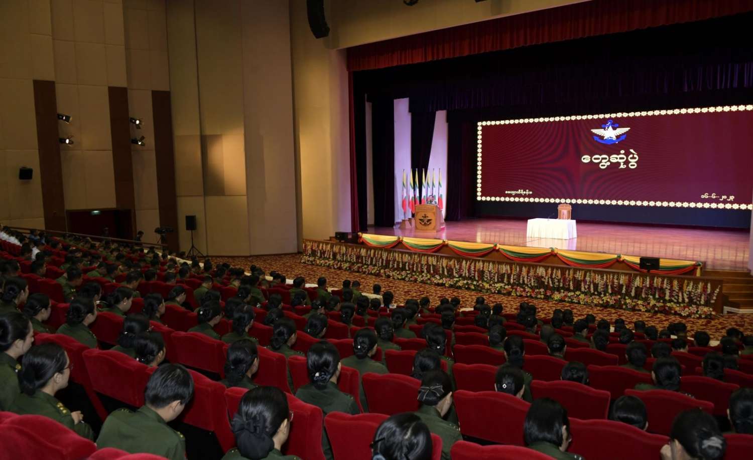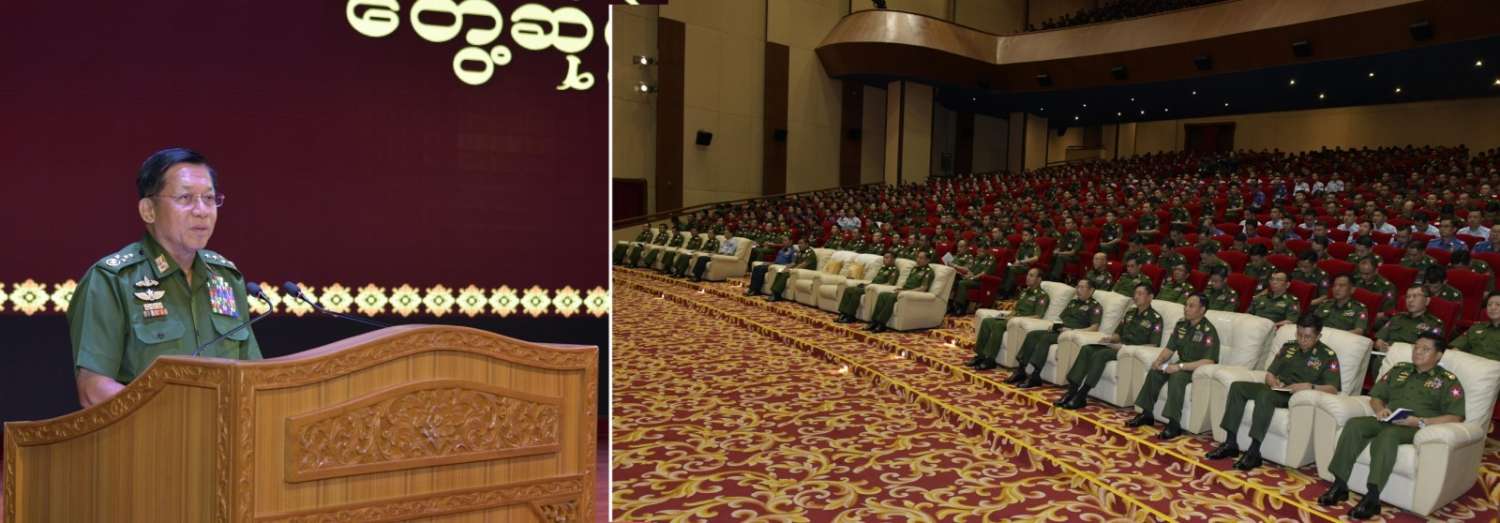 ဦးစွာ နိုင်ငံတော်စီမံအုပ်ချုပ်ရေးကောင်စီဥက္ကဋ္ဌ တပ်မတော်ကာကွယ်ရေးဦးစီးချုပ်က အမှာစကားပြောကြားရာတွင် ကာကွယ်ရေးဦးစီးချုပ်ရုံး(ကြည်း)ရုံး၊ ဌာနအသီးသီးတွင် တာဝန်ထမ်းဆောင်လျက်ရှိသည့်အရာရှိငယ်များအား တပ်မတော်နှင့်အမျိုးသားနိုင်ငံရေး၊ နိုင်ငံတော်၏ နိုင်ငံရေးဖြစ်ပေါ်ပြောင်းလဲမှု၊ တစ်ဦးချင်းတာဝန်ထမ်းဆောင်မှုစသည်တို့နှင့်ပတ်သက်၍ မှန်မှန်ကန်ကန်သိရှိနားလည်ရန်နှင့် အခြားလိုအပ်သည်များကိုမှာကြားနိုင်ရန် ယခုကဲ့သို့တွေ့ဆုံရခြင်းဖြစ်ကြောင်း၊ မည်သည့်နိုင်ငံတွင်ဖြစ်စေ နိုင်ငံတော်ကိုကာကွယ်ထိန်းသိမ်းစောင့်ရှောက်ရန်မှာ နိုင်ငံသားတိုင်း၏တာဝန်ပင်ဖြစ်ကြောင်း၊ တစ်နိုင်ငံနှင့်တစ်နိုင်ငံ အခြေအနေများတူညီမှုမရှိကြဘဲ နယ်ချဲ့နိုင်ငံများ၊ ကိုလိုနီပြုခြင်းခံခဲ့ရသည့်နိုင်ငံများနှင့် ကိုလိုနီပြုခြင်းမခံခဲ့ရသည့် နိုင်ငံများ စသည်ဖြင့်အမျိုးမျိုးရှိကြောင်း၊ နိုင်ငံ၏ယဉ်ကျေးမှုစရိုက် လက္ခဏာ၊ အမျိုးသားရေးစရိုက် လက္ခဏာများမပျောက်မပျက်အောင် ထိန်းသိမ်းဆောင်ရွက်ခြင်းသည် အမျိုးသားနိုင်ငံရေးပင်ဖြစ်ကြောင်း၊ နိုင်ငံ၏အမျိုးသားအကျိုးစီးပွားကို ကာကွယ်စောင့်ရှောက်ခြင်းဖြစ်ကြောင်း၊ မိမိတို့နိုင်ငံ၏ အမျိုးသားအကျိုးစီးပွားနှင့် အမျိုးသားနိုင်ငံရေးမှာ သမိုင်းနှင့်ချီ၍ဖြစ်ပေါ်လာခဲ့သည့် ပြည်ထောင်စုမပြိုကွဲရေး၊ တိုင်းရင်းသား စည်းလုံးညီညွတ်မှုမပြိုကွဲရေး၊ အချုပ်အခြာအာဏာတည်တံ့ခိုင်မြဲရေးဟူသည့် တို့တာဝန်အရေးသုံးပါးကို ထိန်းသိမ်းဆောင်ရွက်ခြင်း ပင်ဖြစ်ကြောင်း။