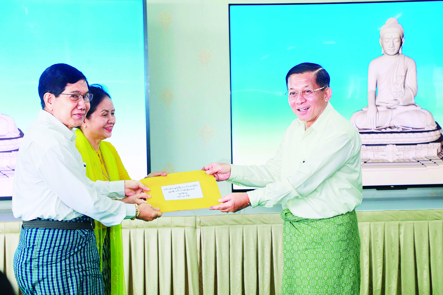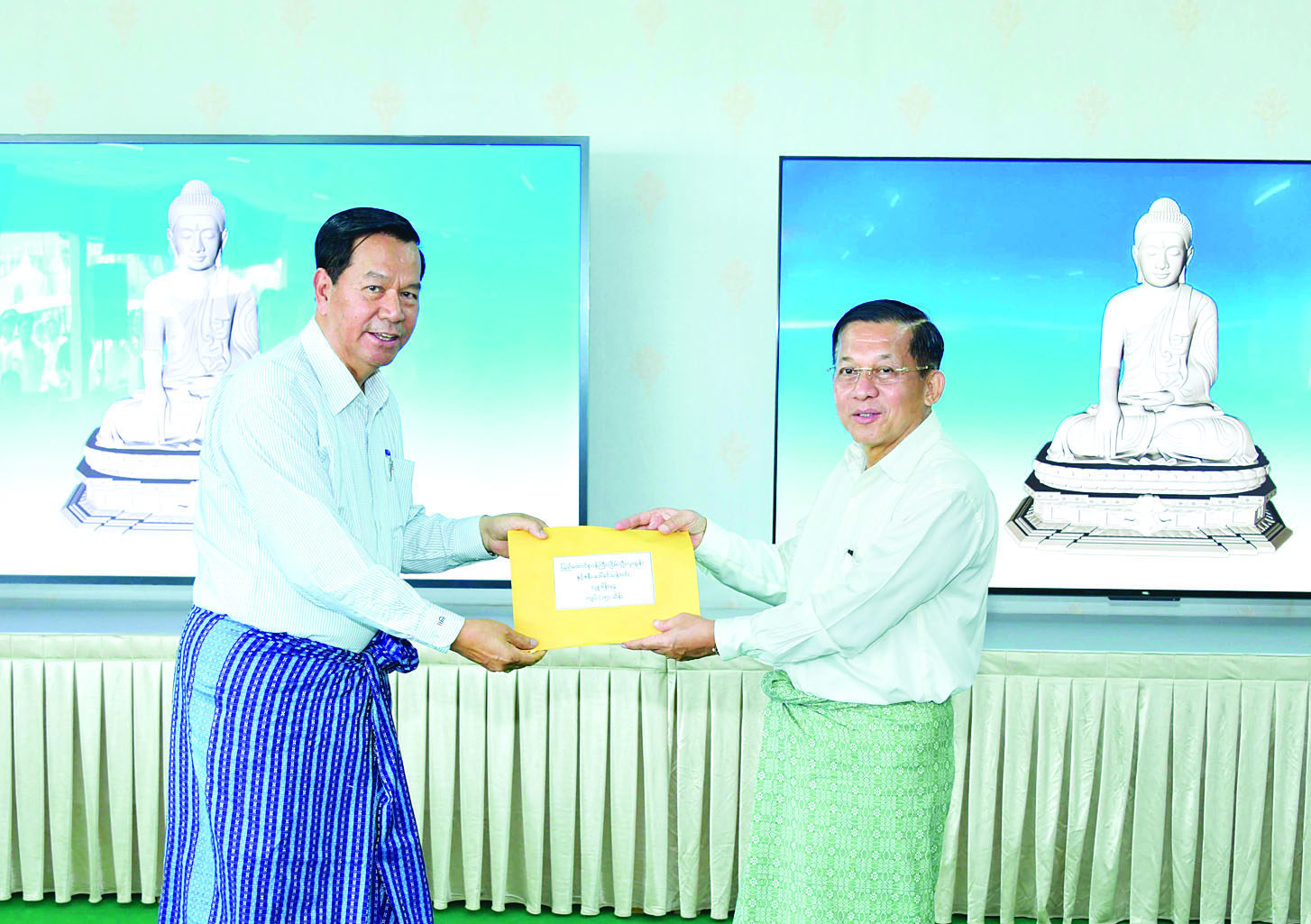 ယင်းနောက် ဦးဆောင်ဘုရားဒါယကာ နိုင်ငံတော်စီမံအုပ်ချုပ်ရေးကောင်စီဥက္ကဋ္ဌ နိုင်ငံတော်ဝန်ကြီးချုပ်က မတည်အလှူငွေများ စုပေါင်းလှူဒါန်းကြခြင်းအပေါ် ကျေးဇူးတင်စကား ပြန်လည်ပြောကြားသည်။