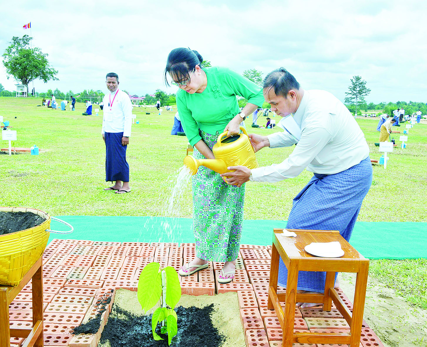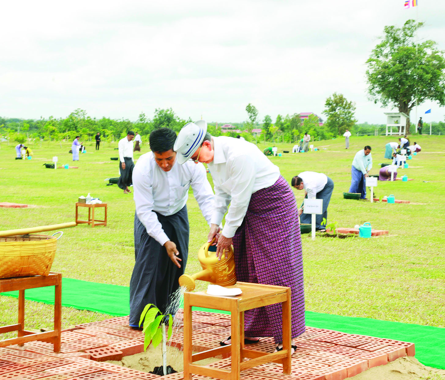 ၎င်းနောက် ဦးဆောင်ဘုရားဒါယကာ နိုင်ငံတော်စီမံအုပ်ချုပ်ရေးကောင်စီဥက္ကဋ္ဌ နိုင်ငံတော်ဝန်ကြီးချုပ်နှင့်ဇနီး၊ အခမ်းအနားတက်ရောက်လာကြသူများသည် လုမ္ဗိနီအင်ကြင်းပင်များကို စုပေါင်းစိုက်ပျိုးကြသည်။