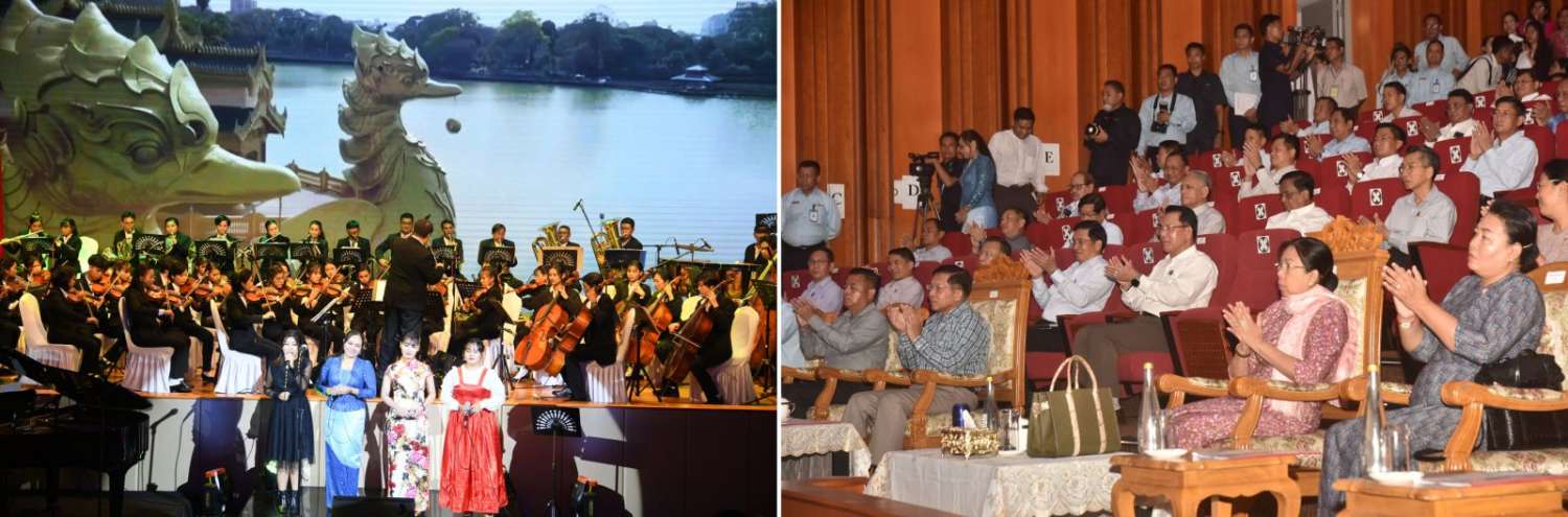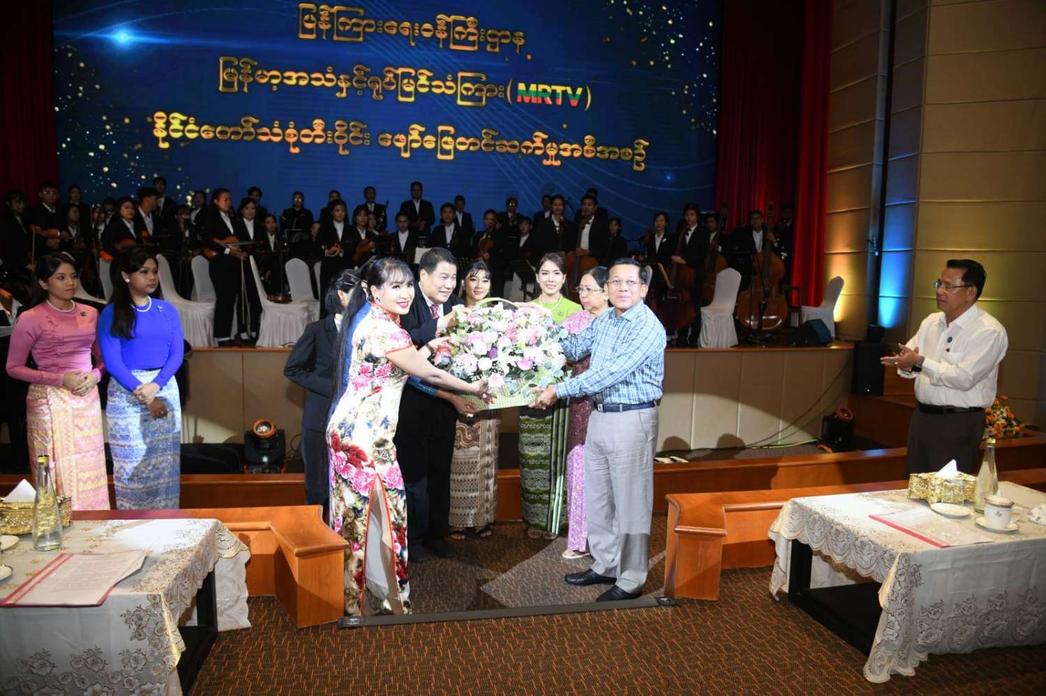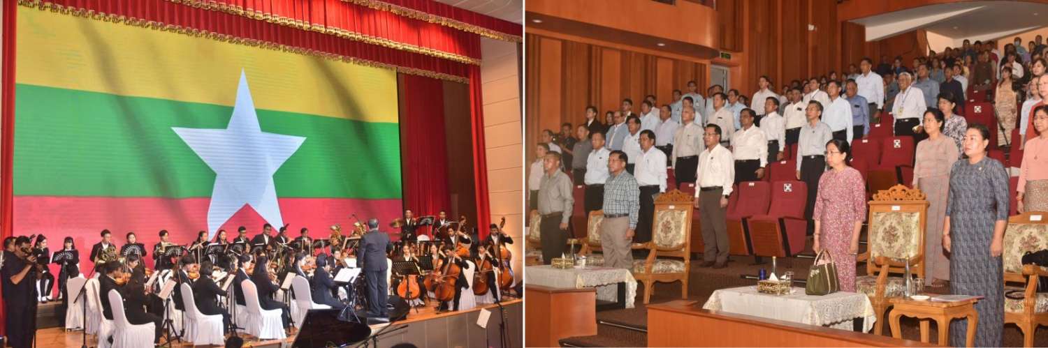 ထို့နောက် နိုင်ငံတော်သံစုံတီးဝိုင်းနှင့်အတူ တွဲဖက်၍ မြန်မာ့အသံနှင့်ရုပ်မြင်သံကြားမှ တေးသံရှင်များ၊ နိုင်ငံကျော်ရုပ်ရှင်နှင့် ဂီတအနုပညာရှင်များက မြန်မာသံစဉ်များ၊ ခေတ်ပေါ်သံစဉ်များနှင့် နိုင်ငံတကာ ကမ္ဘာကျော်တေးသီချင်းများဖြင့် ဖျော်ဖြေတင်ဆက်ကြရာ နိုင်ငံတော်သံစုံတီးဝိုင်းမှ နိုင်ငံတော်သီချင်းကို တီးမှုတ်ရာ နိုင်ငံတော်စီမံအုပ်ချုပ်ရေးကောင်စီဥက္ကဋ္ဌ နိုင်ငံတော်ဝန်ကြီးချုပ်နှင့် ဇနီး၊ တက်ရောက်လာကြသူများက ကြည့်ရှုအားပေးခဲ့ကြသည်။