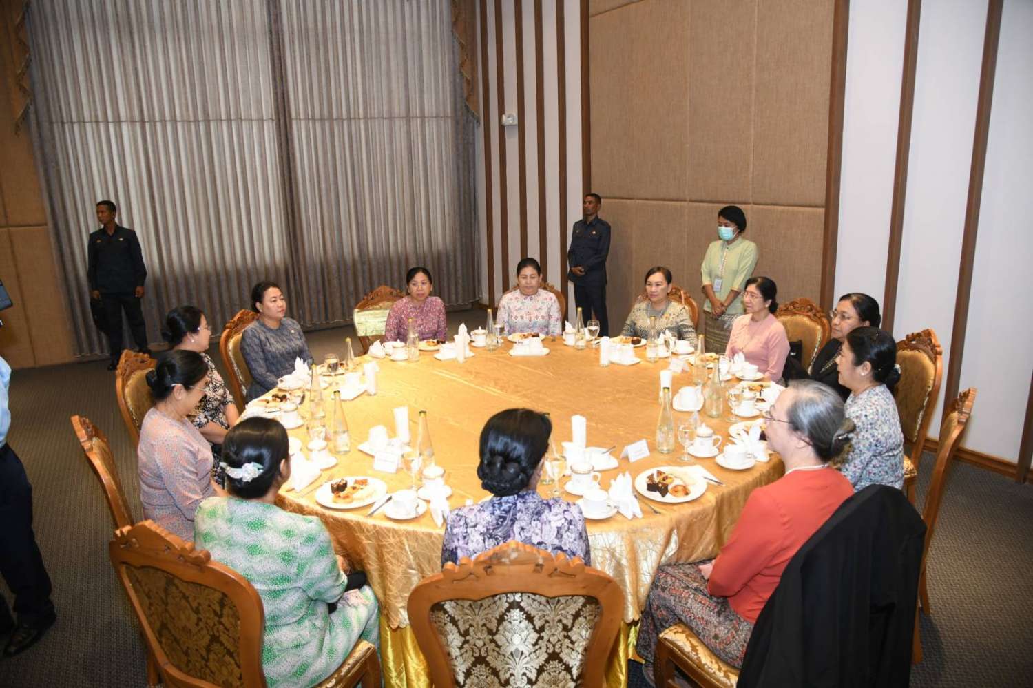 ထို့နောက် နိုင်ငံတော်စီမံအုပ်ချုပ်ရေးကောင်စီဥက္ကဋ္ဌ နိုင်ငံတော်ဝန်ကြီးချုပ်နှင့် ဇနီးတို့သည် ဖျော်ဖြေပွဲသို့ တက်ရောက်လာကြသူများ၊ နိုင်ငံကျော်အနုပညာရှင်များနှင့် လက်ဖက်ရည်ဝိုင်းတွင် အတူတကွသုံးဆောင်ကြပြီး သုံးဆောင်အပြီးတွင် နိုင်ငံတော်စီမံအုပ်ချုပ်ရေးကောင်စီဥက္ကဋ္ဌ နိုင်ငံတော်ဝန်ကြီးချုပ်က နိုင်ငံကျော်အနုပညာရှင်များအား ရင်းရင်းနှီးနှီးနှုတ်ဆက်ခဲ့ကြကြောင်း သတင်းရရှိသည်။