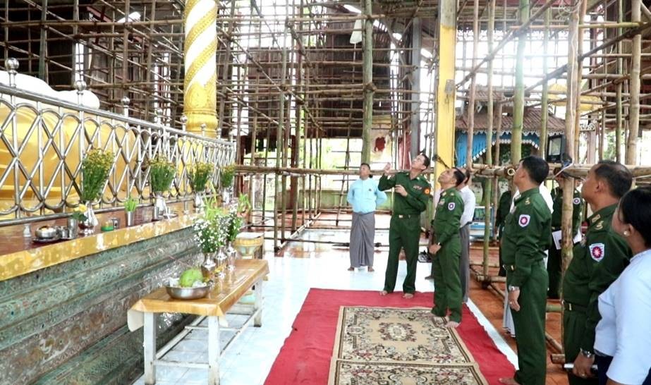 ဦးစွာ ပြန်လည်ပြုပြင်ရေးအဖွဲ့ တာဝန်ရှိသူများနှင့် သာသနာရေးဦးစီးဌာန၊ ရှေးဟောင်းသုတေသနညွှန်ကြားရေးမှူးတို့က ဦးရဲကျော်သူ ကျောင်းတိုက်ရှိ သကျမုနိဘုရားသိမ်တော်ကြီးအား ပြန်လည်ပြုပြင်ဆောင်ရွက်နေမှုအခြေအနေများ၊ သိမ်တော်ကြီးအတွင်း အရောင်မတူပျက်စီးနေသည့် ကြွေပြားအဟောင်းများခွာ၍ ကြွေပြားအသစ်များ အစားထိုးပြုပြင်ခြင်းနှင့် အတွင်း/ အပြင်၌ မီး-ရေလိုင်းများ အသစ်အစားထိုးပြုပြင်ခြင်းလုပ်ငန်းများ ဆောက်ရွက်နေမှုအခြေအနေများနှင့် ပတ်သက်၍ ရှင်းလင်းတင်ပြကြရာ တိုင်းမှူးက လိုအပ်သည်များ ပေါင်းစပ်ညှိနှိုင်းဆောင်ရွက်ပေးသည်။
