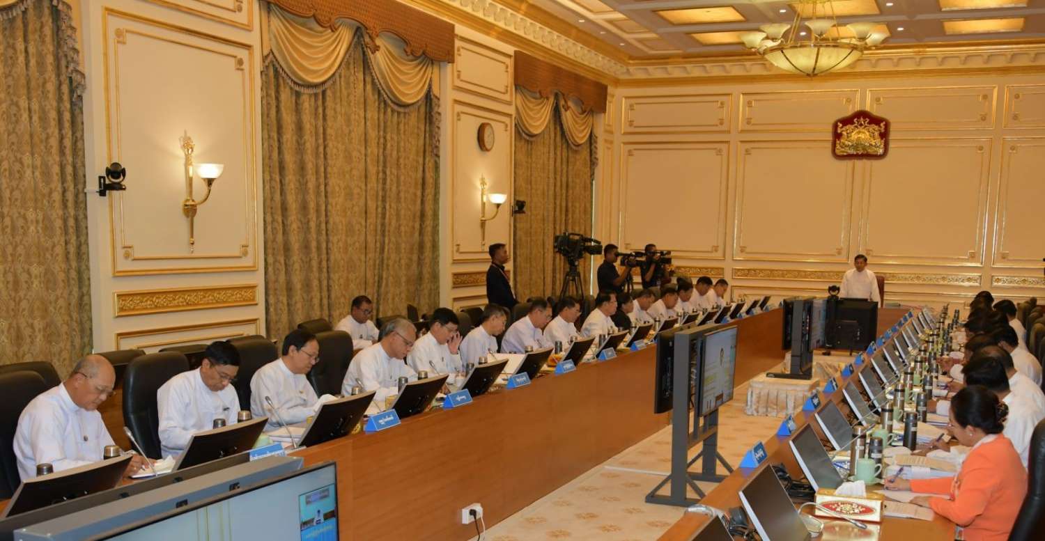 ယင်းနောက် အစည်းအဝေးသို့ တက်ရောက်လာကြသည့် ပြည်ထောင်စုဝန်ကြီးများက သက်ဆိုင်ရာကဏ္ဍအလိုက် ရှင်းလင်းတင်ပြကြသည်။